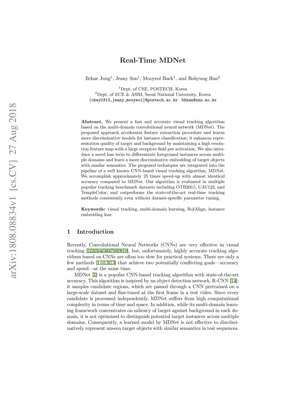 We present a fast and accurate visual tracking algorithm based on the multi-domain convolutional neural network (MDNet). The proposed approach accelerates feature extraction procedure and learns more discriminative models for instance classification; it enhances representation quality of target and background by maintaining a high resolution feature map with a large receptive field per activation. We also introduce a novel loss term to differentiate foreground instances across multiple domains and learn a more discriminative embedding of target objects with similar semantics. The proposed techniques are integrated into the pipeline of a well known CNN-based visual tracking algorithm, MDNet. We accomplish approximately 25 times speed-up with almost identical accuracy compared to MDNet. Our algorithm is evaluated in multiple popular tracking benchmark datasets including OTB2015, UAV123, and TempleColor, and outperforms the state-of-the-art real-time tracking methods consistently even without dataset-specific parameter tuning.