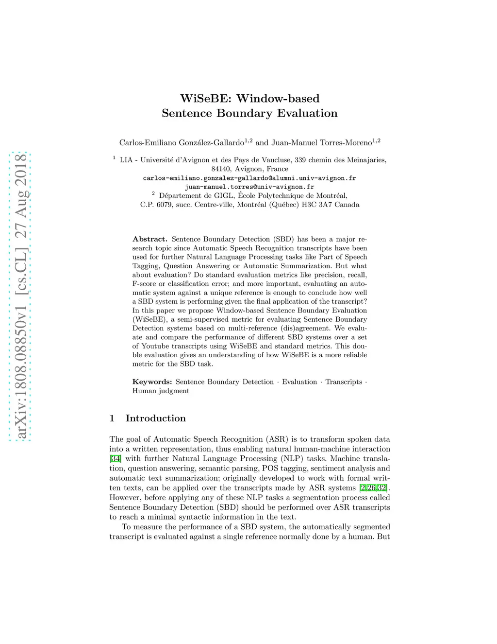 Sentence Boundary Detection (SBD) has been a major research topic since Automatic Speech Recognition transcripts have been used for further Natural Language Processing tasks like Part of Speech Tagging, Question Answering or Automatic Summarization. But what about evaluation? Do standard evaluation metrics like precision, recall, F-score or classification error; and more important, evaluating an automatic system against a unique reference is enough to conclude how well a SBD system is performing given the final application of the transcript? In this paper we propose Window-based Sentence Boundary Evaluation (WiSeBE), a semi-supervised metric for evaluating Sentence Boundary Detection systems based on multi-reference (dis)agreement. We evaluate and compare the performance of different SBD systems over a set of Youtube transcripts using WiSeBE and standard metrics. This double evaluation gives an understanding of how WiSeBE is a more reliable metric for the SBD task.
