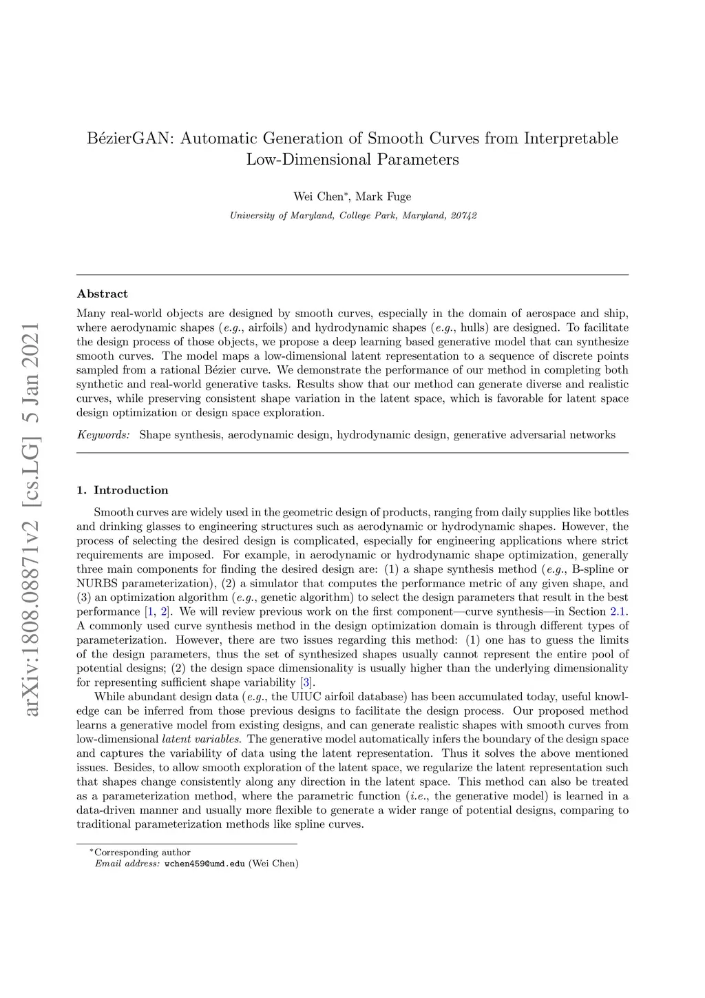 BézierGAN: Automatic Generation of Smooth Curves from Interpretable