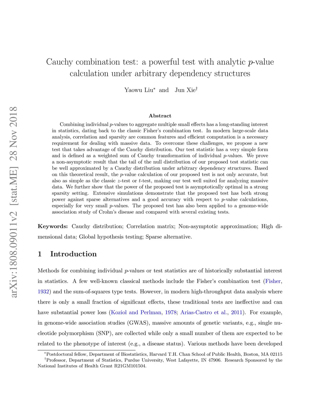 Cauchy combination test: a powerful test with analytic p-value