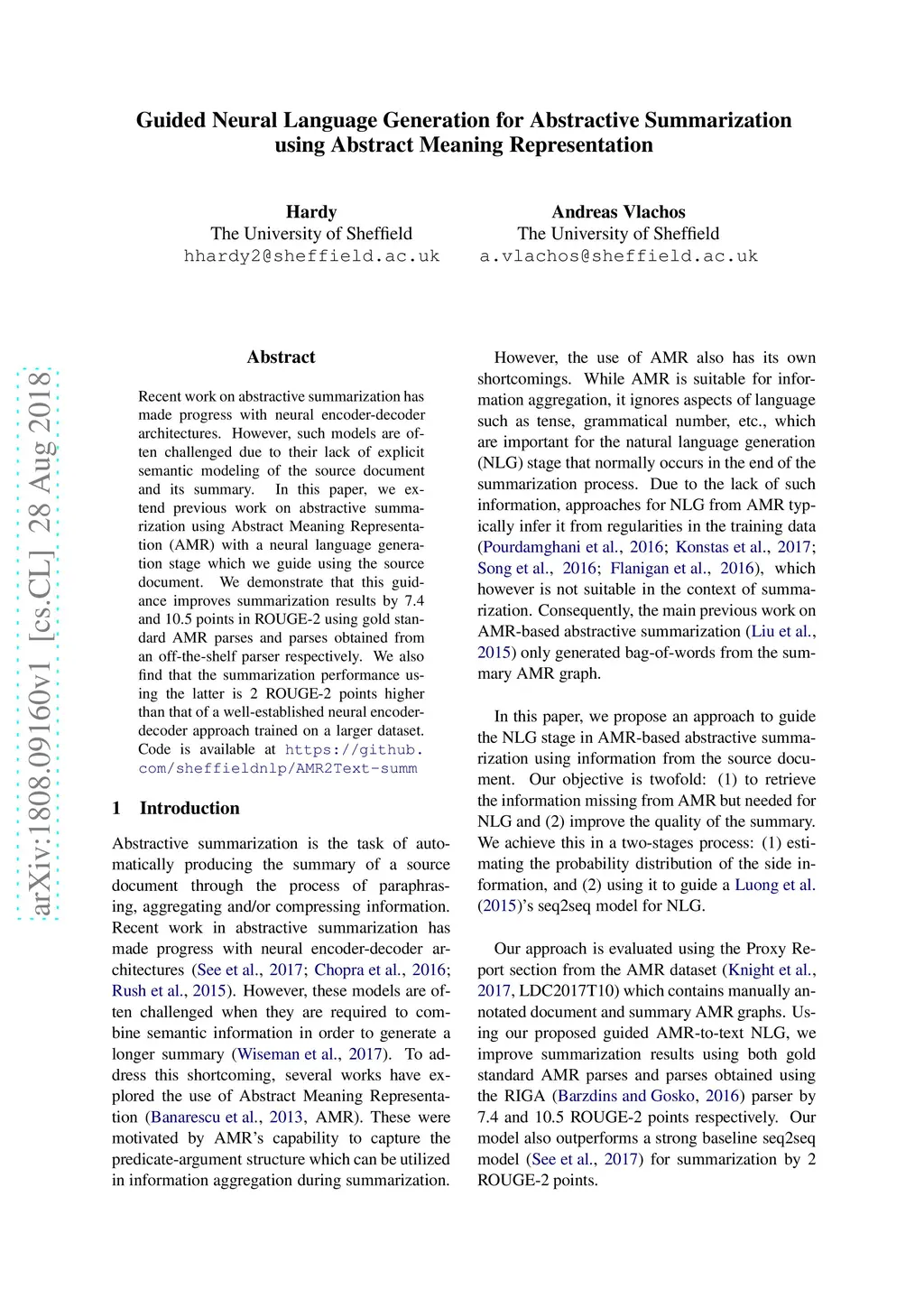 Guided Neural Language Generation for Abstractive Summarization using