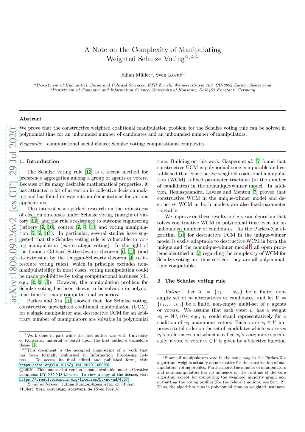 A Note on the Complexity of Manipulating Weighted Schulze Voting