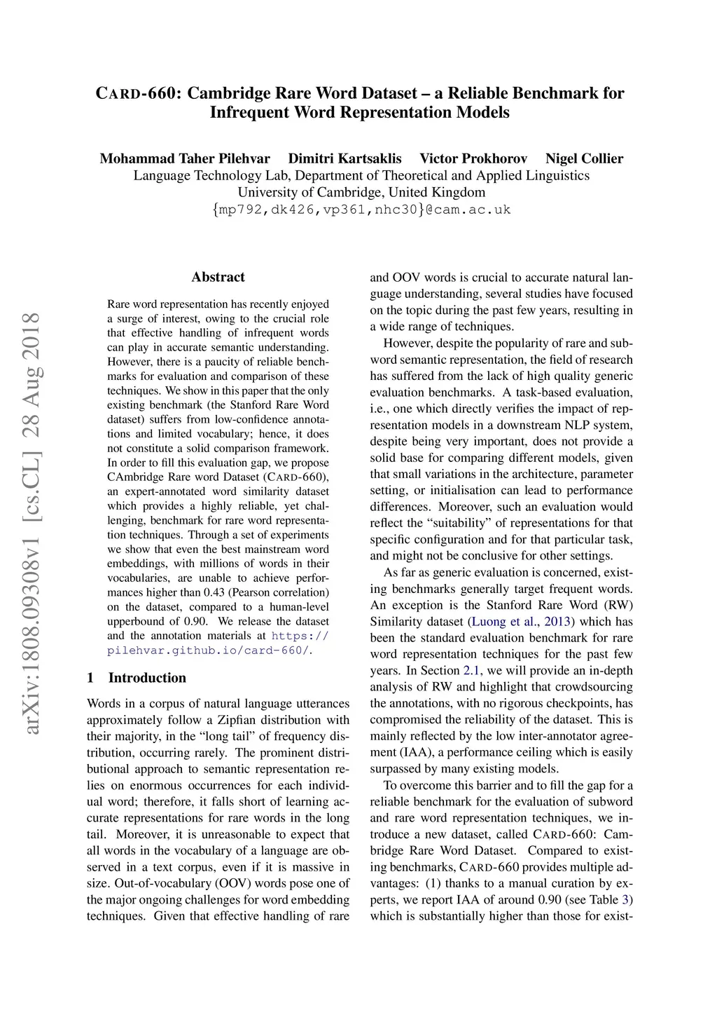 Card-660: Cambridge Rare Word Dataset - a Reliable Benchmark for