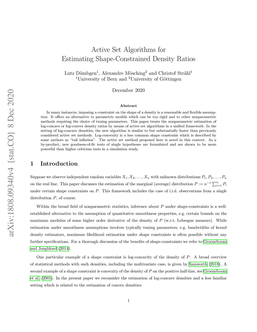 In many instances, imposing a constraint on the shape of a density is a reasonable and flexible assumption. It offers an alternative to parametric models which can be too rigid and to other nonparametric methods requiring the choice of tuning parameters. This paper treats the nonparametric estimation of log-concave or log-convex density ratios by means of active set algorithms in a unified framework. In the setting of log-concave densities, the new algorithm is similar to but substantially faster than previously considered active set methods. Log-convexity is a less common shape constraint which is described by some authors as "tail inflation". The active set method proposed here is novel in this context. As a by-product, new goodness-of-fit tests of single hypotheses are formulated and are shown to be more powerful than higher criticism tests in a simulation study.