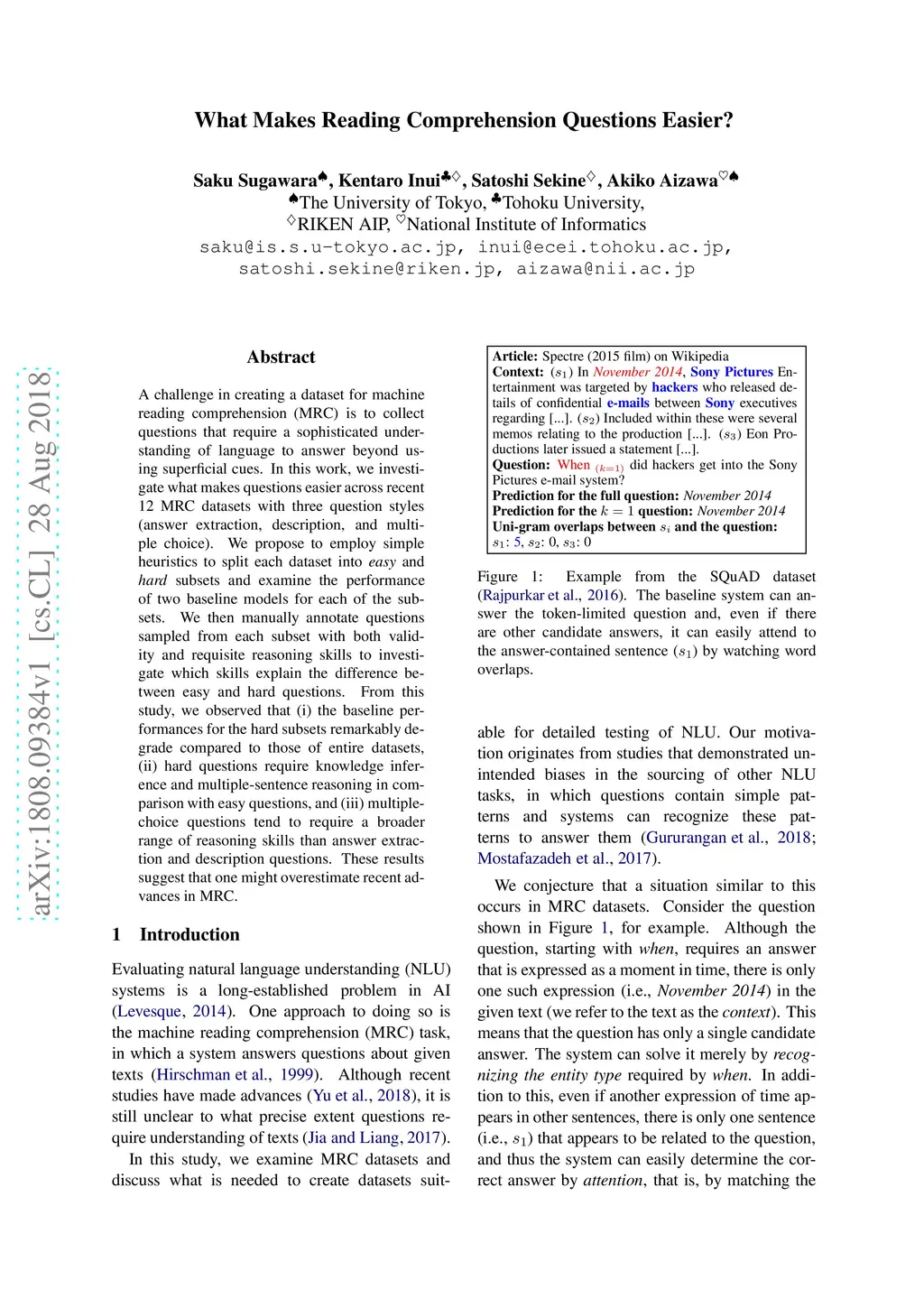 What Makes Reading Comprehension Questions Easier?