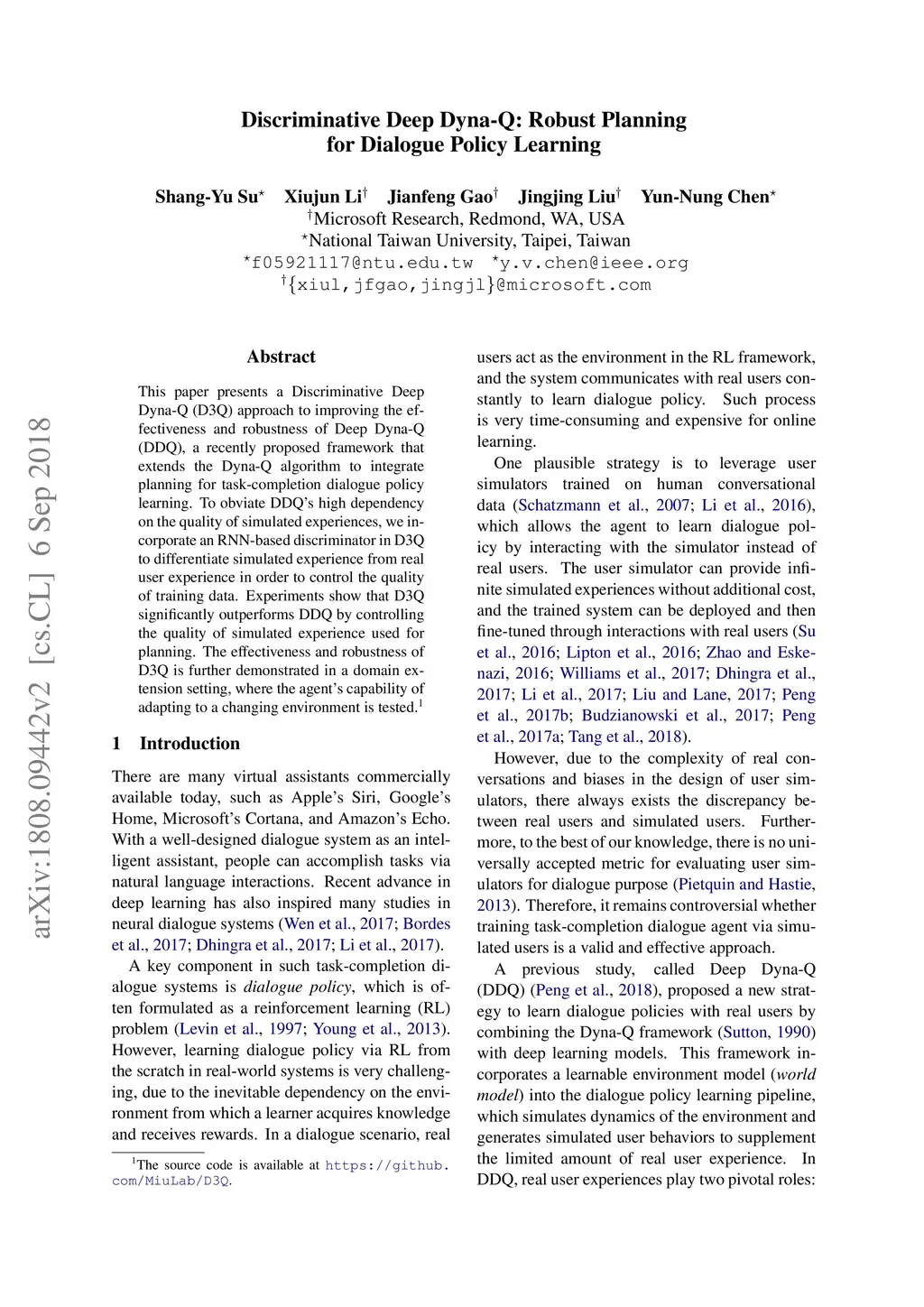 Discriminative Deep Dyna-Q: Robust Planning for Dialogue Policy Learning