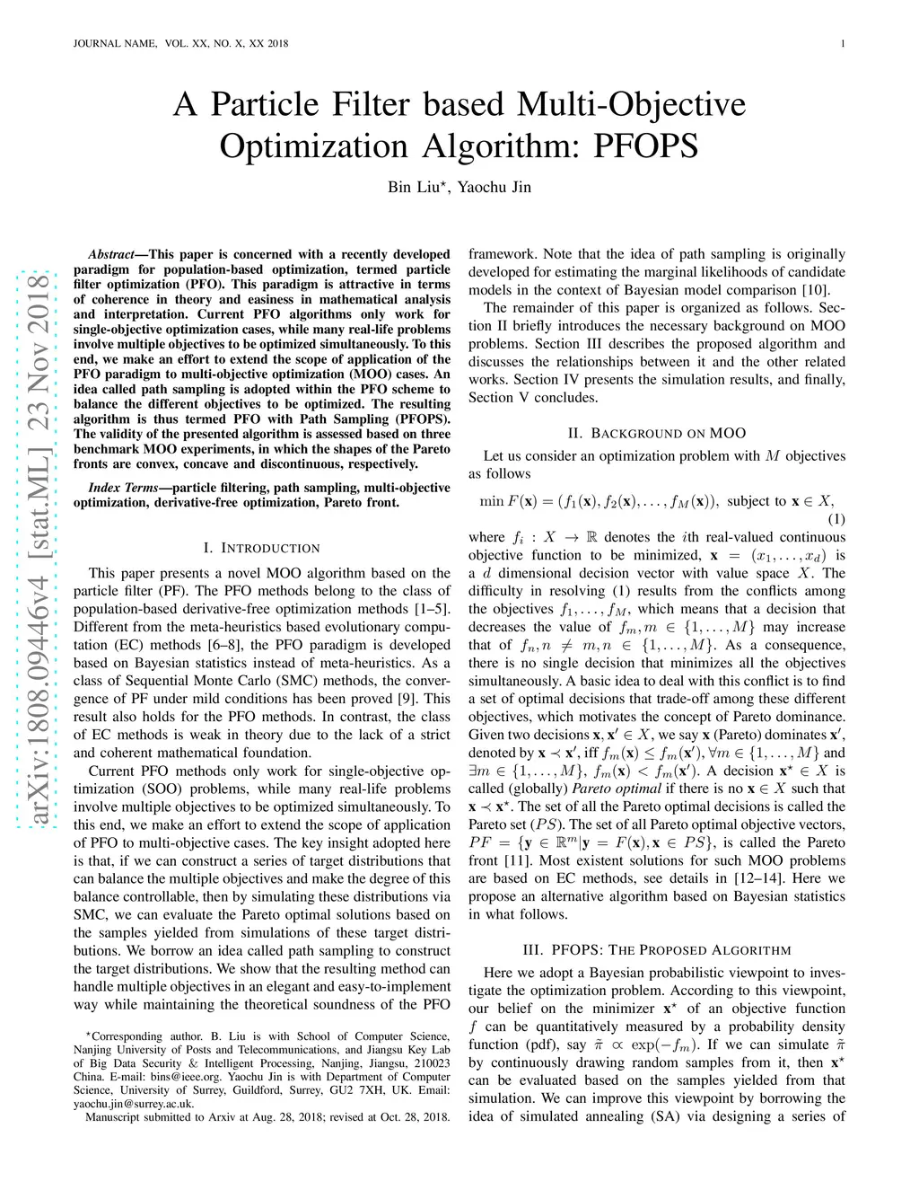 A Particle Filter based Multi-Objective Optimization Algorithm: PFOPS