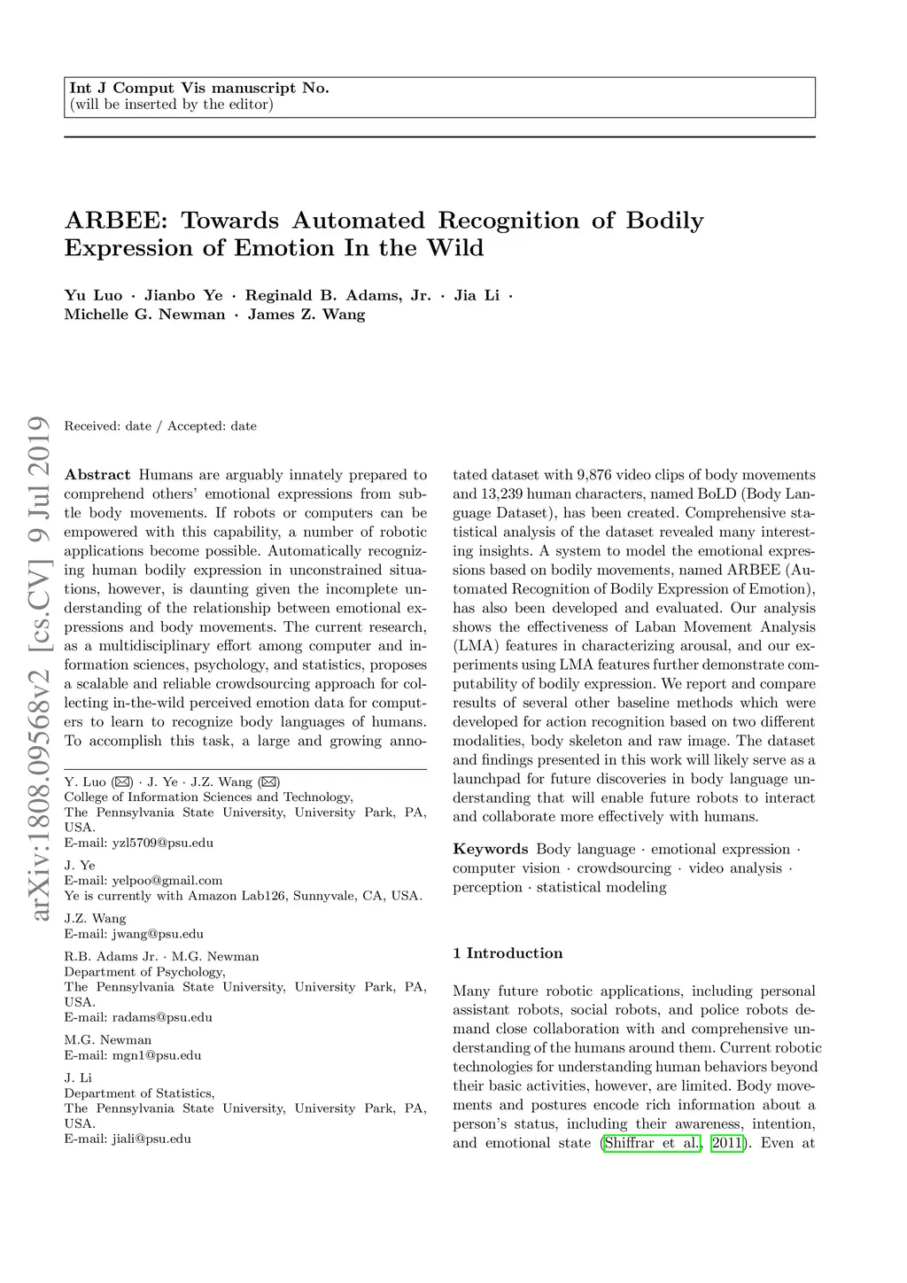 ARBEE: Towards Automated Recognition of Bodily Expression of Emotion In