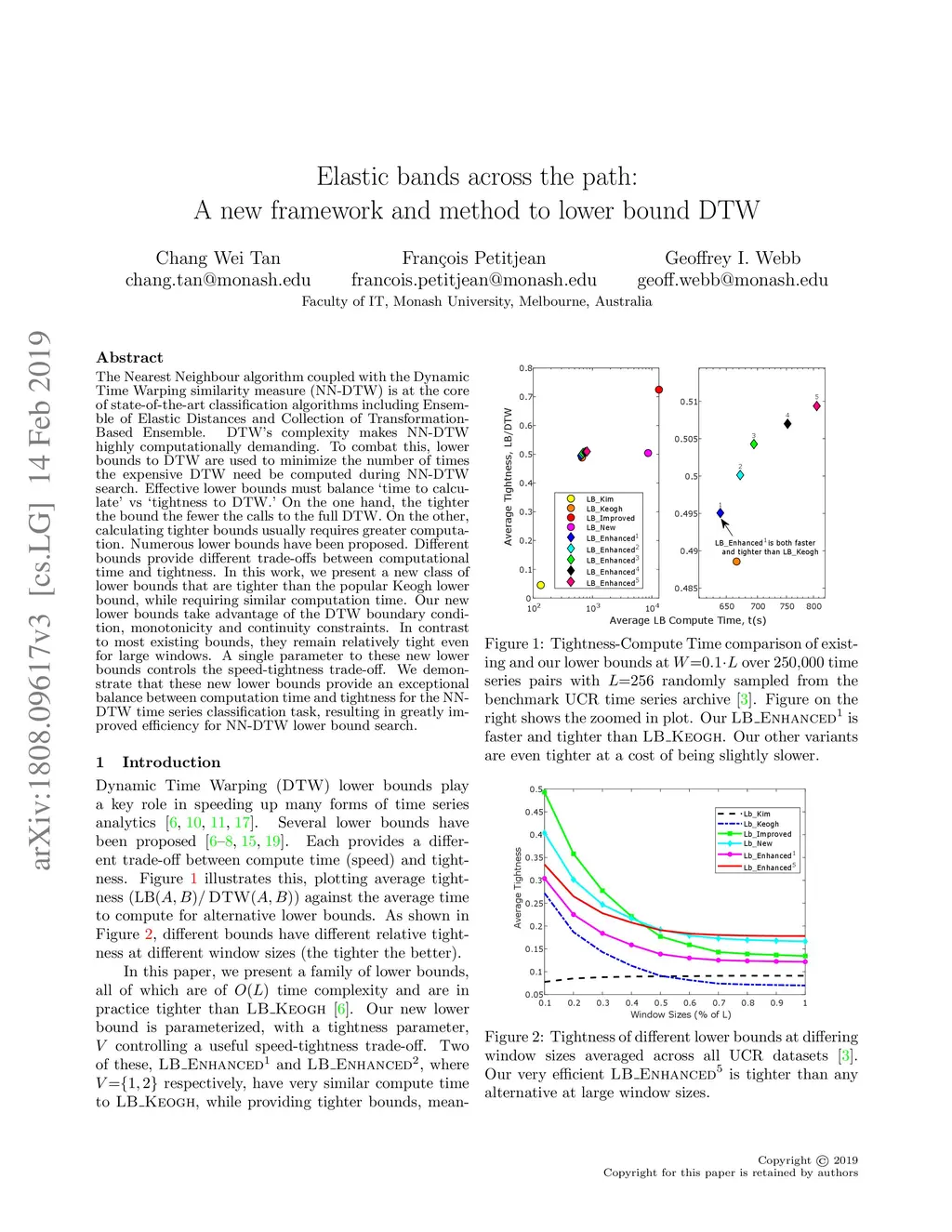 There has been renewed recent interest in developing effective lower bounds for Dynamic Time Warping (DTW) distance between time series. These have many applications in time series indexing, clustering, forecasting, regression and classification. One of the key time series classification algorithms, the nearest neighbor algorithm with DTW distance (NN-DTW) is very expensive to compute, due to the quadratic complexity of DTW. Lower bound search can speed up NN-DTW substantially. An effective and tight lower bound quickly prunes off unpromising nearest neighbor candidates from the search space and minimises the number of the costly DTW computations. The speed up provided by lower bound search becomes increasingly critical as training set size increases. Different lower bounds provide different trade-offs between computation time and tightness. Most existing lower bounds interact with DTW warping window sizes. They are very tight and effective at smaller warping window sizes, but become looser as the warping window increases, thus reducing the pruning effectiveness for NN-DTW. In this work, we present a new class of lower bounds that are tighter than the popular Keogh lower bound, while requiring similar computation time. Our new lower bounds take advantage of the DTW boundary condition, monotonicity and continuity constraints to create a tighter lower bound. Of particular significance, they remain relatively tight even for large windows. A single parameter to these new lower bounds controls the speed-tightness trade-off. We demonstrate that these new lower bounds provide an exceptional balance between computation time and tightness for the NN-DTW time series classification task, resulting in greatly improved efficiency for NN-DTW lower bound search.