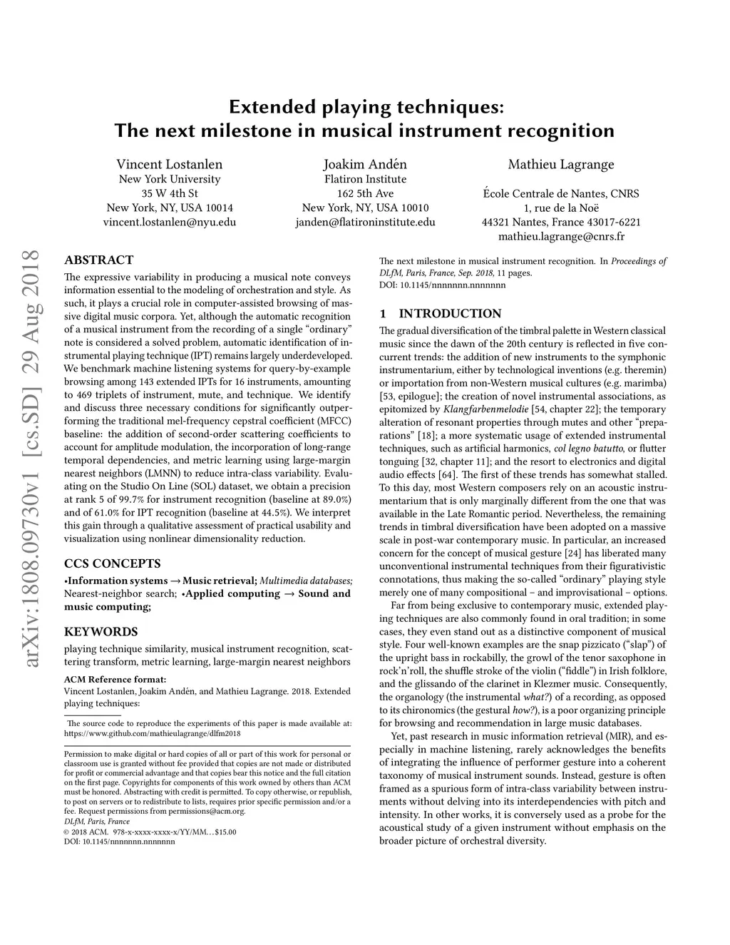 The expressive variability in producing a musical note conveys information essential to the modeling of orchestration and style. As such, it plays a crucial role in computer-assisted browsing of massive digital music corpora. Yet, although the automatic recognition of a musical instrument from the recording of a single "ordinary" note is considered a solved problem, automatic identification of instrumental playing technique (IPT) remains largely underdeveloped. We benchmark machine listening systems for query-by-example browsing among 143 extended IPTs for 16 instruments, amounting to 469 triplets of instrument, mute, and technique. We identify and discuss three necessary conditions for significantly outperforming the traditional mel-frequency cepstral coefficient (MFCC) baseline: the addition of second-order scattering coefficients to account for amplitude modulation, the incorporation of long-range temporal dependencies, and metric learning using large-margin nearest neighbors (LMNN) to reduce intra-class variability. Evaluating on the Studio On Line (SOL) dataset, we obtain a precision at rank 5 of 99.7% for instrument recognition (baseline at 89.0%) and of 61.0% for IPT recognition (baseline at 44.5%). We interpret this gain through a qualitative assessment of practical usability and visualization using nonlinear dimensionality reduction.