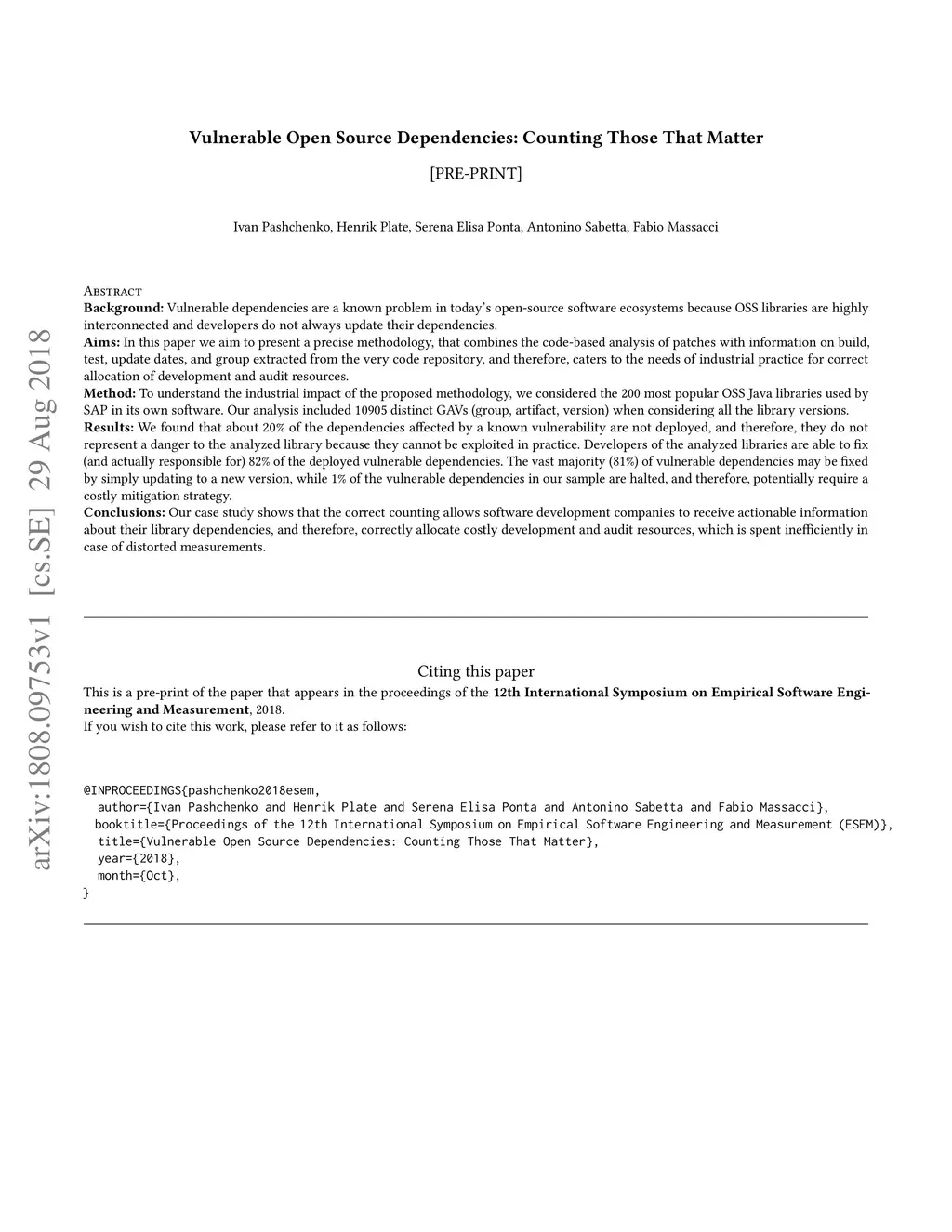 BACKGROUND: Vulnerable dependencies are a known problem in today's open-source software ecosystems because OSS libraries are highly interconnected and developers do not always update their dependencies. AIMS: In this paper we aim to present a precise methodology, that combines the code-based analysis of patches with information on build, test, update dates, and group extracted from the very code repository, and therefore, caters to the needs of industrial practice for correct allocation of development and audit resources. METHOD: To understand the industrial impact of the proposed methodology, we considered the 200 most popular OSS Java libraries used by SAP in its own software. Our analysis included 10905 distinct GAVs (group, artifact, version) when considering all the library versions. RESULTS: We found that about 20% of the dependencies affected by a known vulnerability are not deployed, and therefore, they do not represent a danger to the analyzed library because they cannot be exploited in practice. Developers of the analyzed libraries are able to fix (and actually responsible for) 82% of the deployed vulnerable dependencies. The vast majority (81%) of vulnerable dependencies may be fixed by simply updating to a new version, while 1% of the vulnerable dependencies in our sample are halted, and therefore, potentially require a costly mitigation strategy. CONCLUSIONS: Our case study shows that the correct counting allows software development companies to receive actionable information about their library dependencies, and therefore, correctly allocate costly development and audit resources, which is spent inefficiently in case of distorted measurements.
