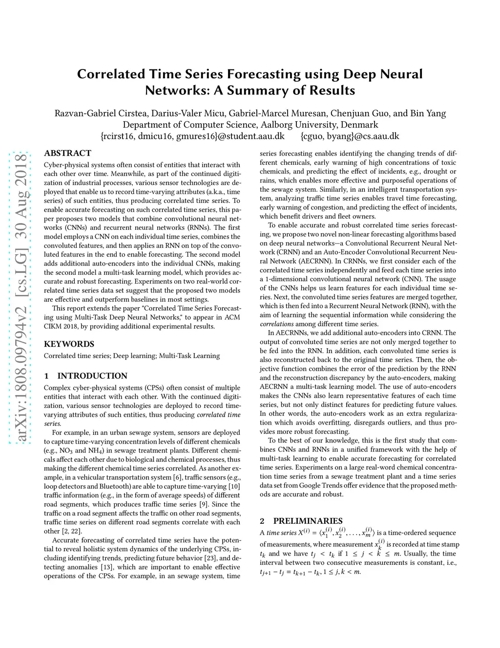 Correlated Time Series Forecasting using Deep Neural Networks: A Summary