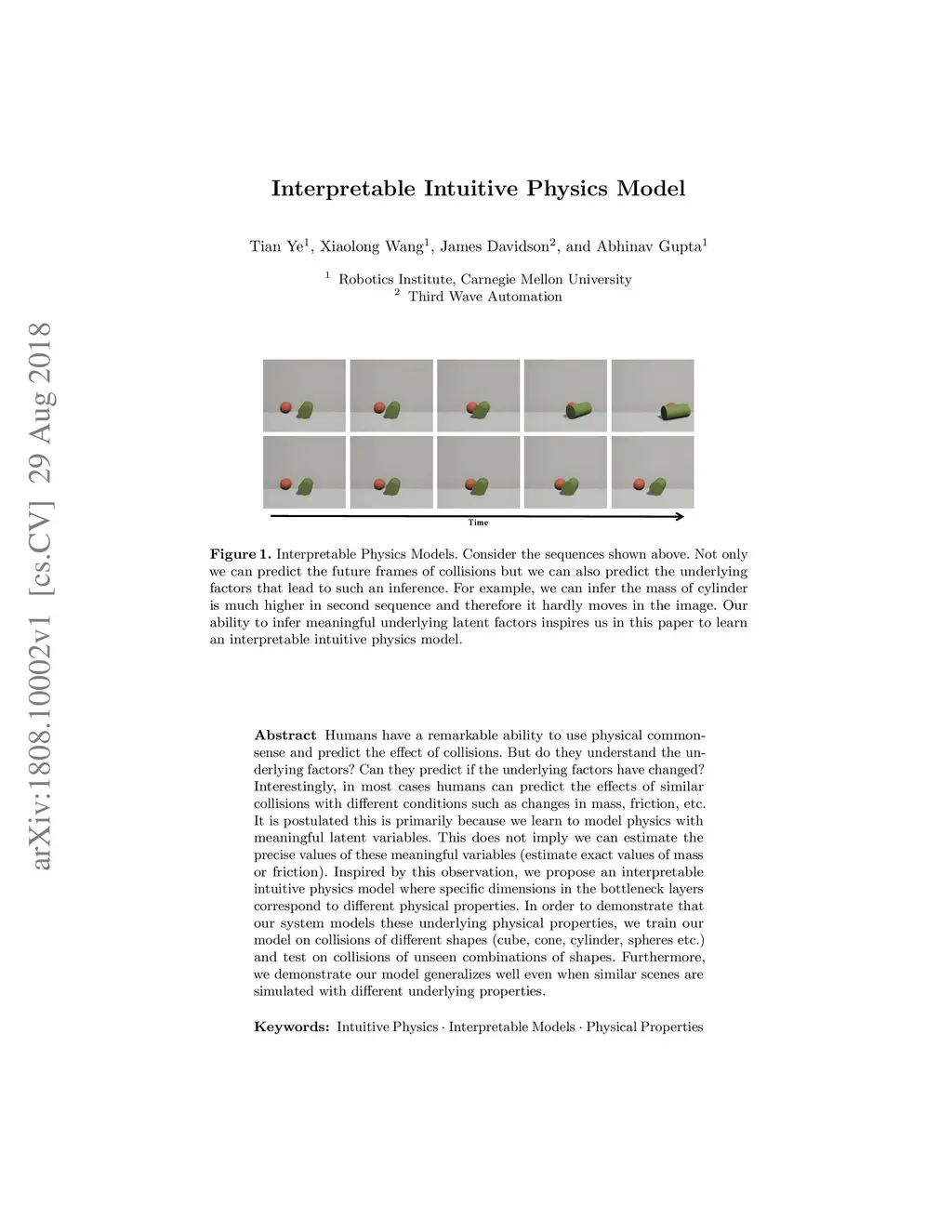 Humans have a remarkable ability to use physical commonsense and predict the effect of collisions. But do they understand the underlying factors? Can they predict if the underlying factors have changed? Interestingly, in most cases humans can predict the effects of similar collisions with different conditions such as changes in mass, friction, etc. It is postulated this is primarily because we learn to model physics with meaningful latent variables. This does not imply we can estimate the precise values of these meaningful variables (estimate exact values of mass or friction). Inspired by this observation, we propose an interpretable intuitive physics model where specific dimensions in the bottleneck layers correspond to different physical properties. In order to demonstrate that our system models these underlying physical properties, we train our model on collisions of different shapes (cube, cone, cylinder, spheres etc.) and test on collisions of unseen combinations of shapes. Furthermore, we demonstrate our model generalizes well even when similar scenes are simulated with different underlying properties.