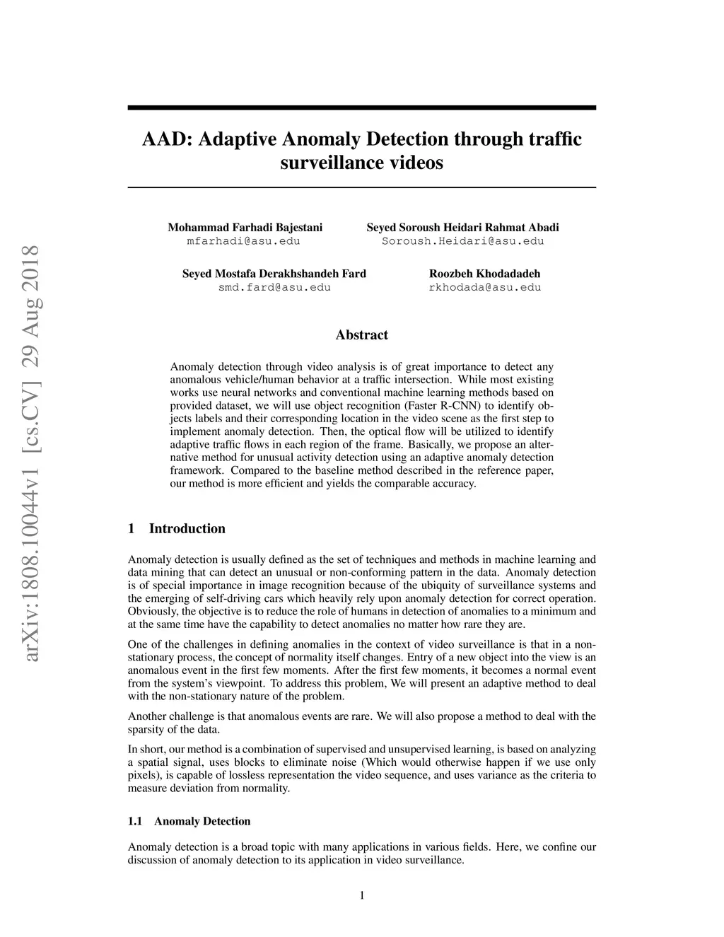 AAD: Adaptive Anomaly Detection through traffic surveillance videos