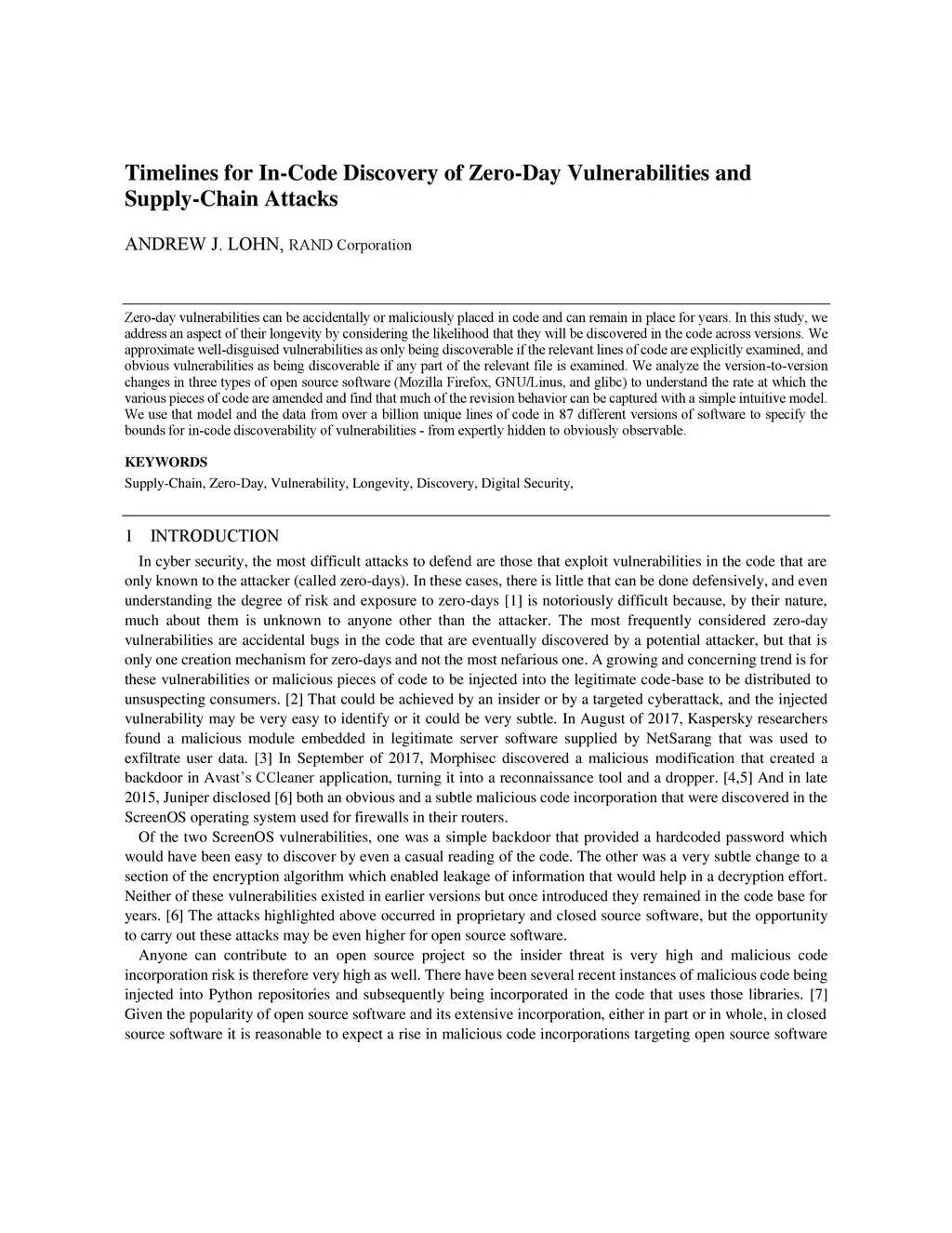 Timelines for In-Code Discovery of Zero-Day Vulnerabilities and