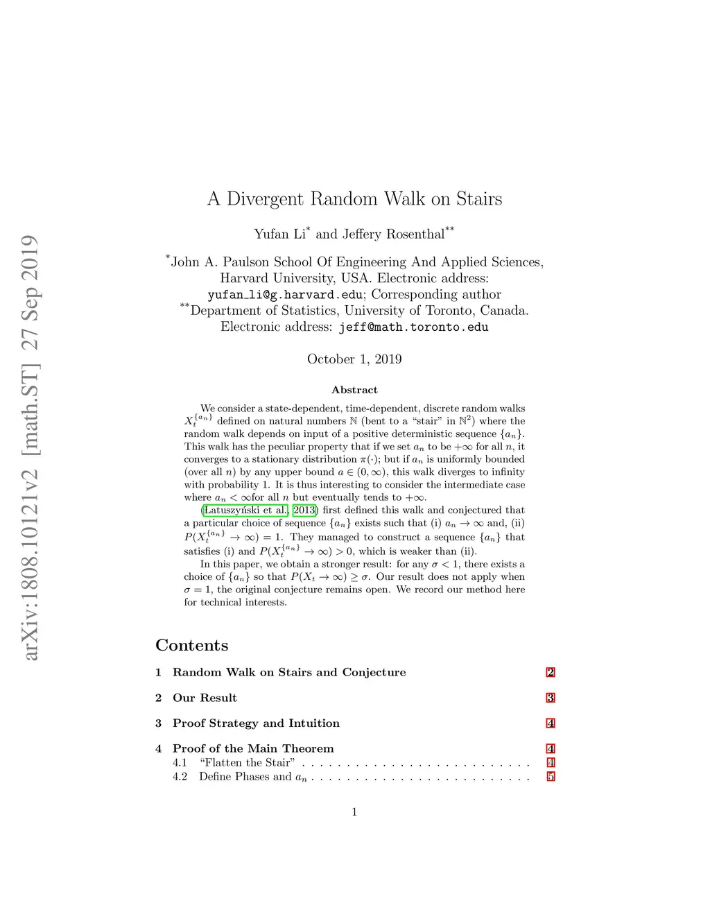 We consider a state-dependent, time-dependent, discrete random walks defined on natural numbers (bent to a "stair" in ) where the random walk depends on input of a positive deterministic sequence . This walk has the peculiar property that if we set to be for all , it converges to a stationary distribution ; but if is uniformly bounded (over all ) by any upper bound , this walk diverges to infinity with probability 1. It is thus interesting to consider the intermediate case where for all but eventually tends to . (Latuszynski et al., 2013) first defined this walk and conjectured that a particular choice of sequence exists such that (i) and, (ii) . They managed to construct a sequence that satisfies (i) and , which is weaker than (ii). In this paper, we obtain a stronger result: for any , there exists a choice of so that . Our result does not apply when , the original conjecture remains open. We record our method here for technical interests.