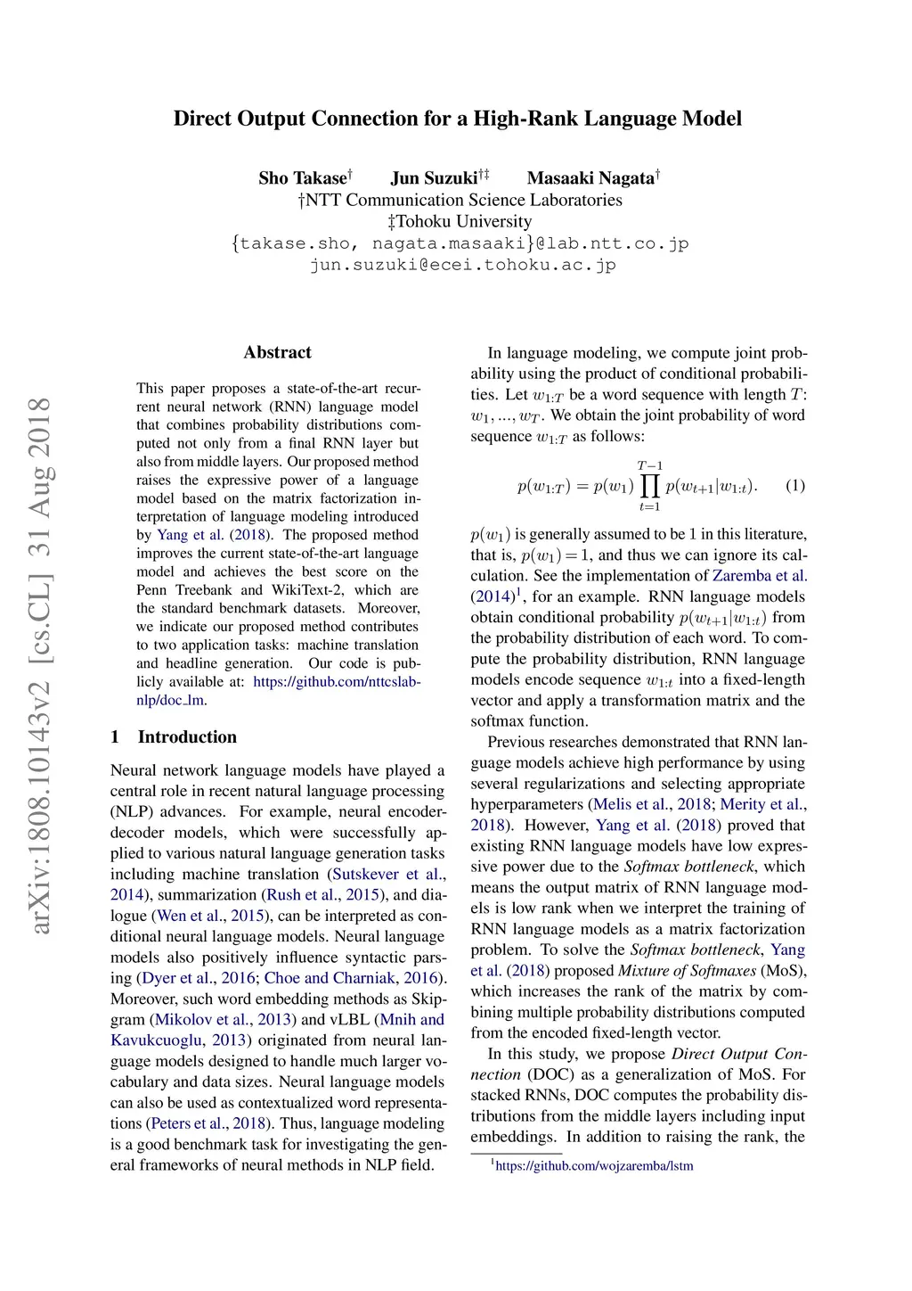 This paper proposes a state-of-the-art recurrent neural network (RNN) language model that combines probability distributions computed not only from a final RNN layer but also from middle layers. Our proposed method raises the expressive power of a language model based on the matrix factorization interpretation of language modeling introduced by Yang et al. (2018). The proposed method improves the current state-of-the-art language model and achieves the best score on the Penn Treebank and WikiText-2, which are the standard benchmark datasets. Moreover, we indicate our proposed method contributes to two application tasks: machine translation and headline generation. Our code is publicly available at: https://github.com/nttcslab-nlp/doc_lm.