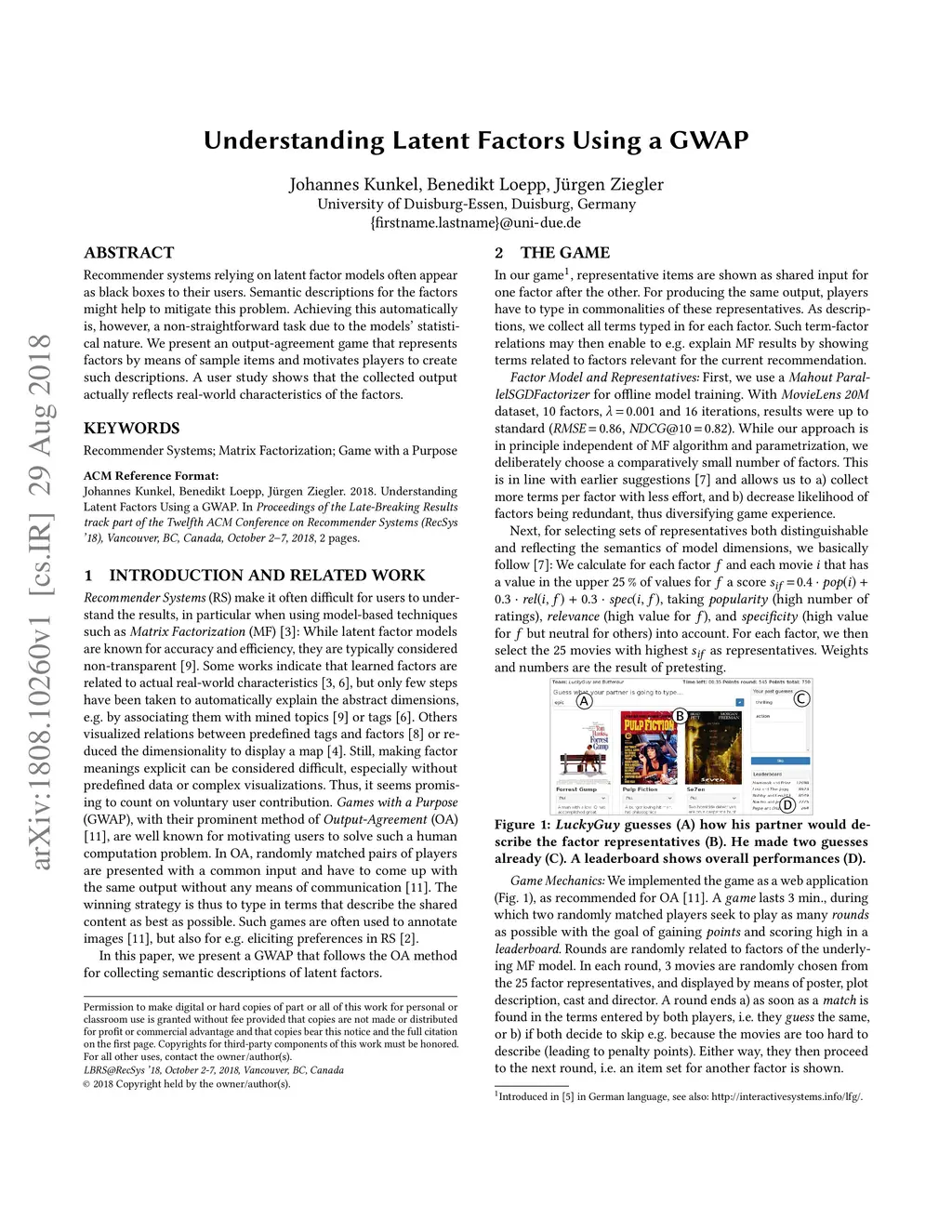 Recommender systems relying on latent factor models often appear as black boxes to their users. Semantic descriptions for the factors might help to mitigate this problem. Achieving this automatically is, however, a non-straightforward task due to the models' statistical nature. We present an output-agreement game that represents factors by means of sample items and motivates players to create such descriptions. A user study shows that the collected output actually reflects real-world characteristics of the factors.