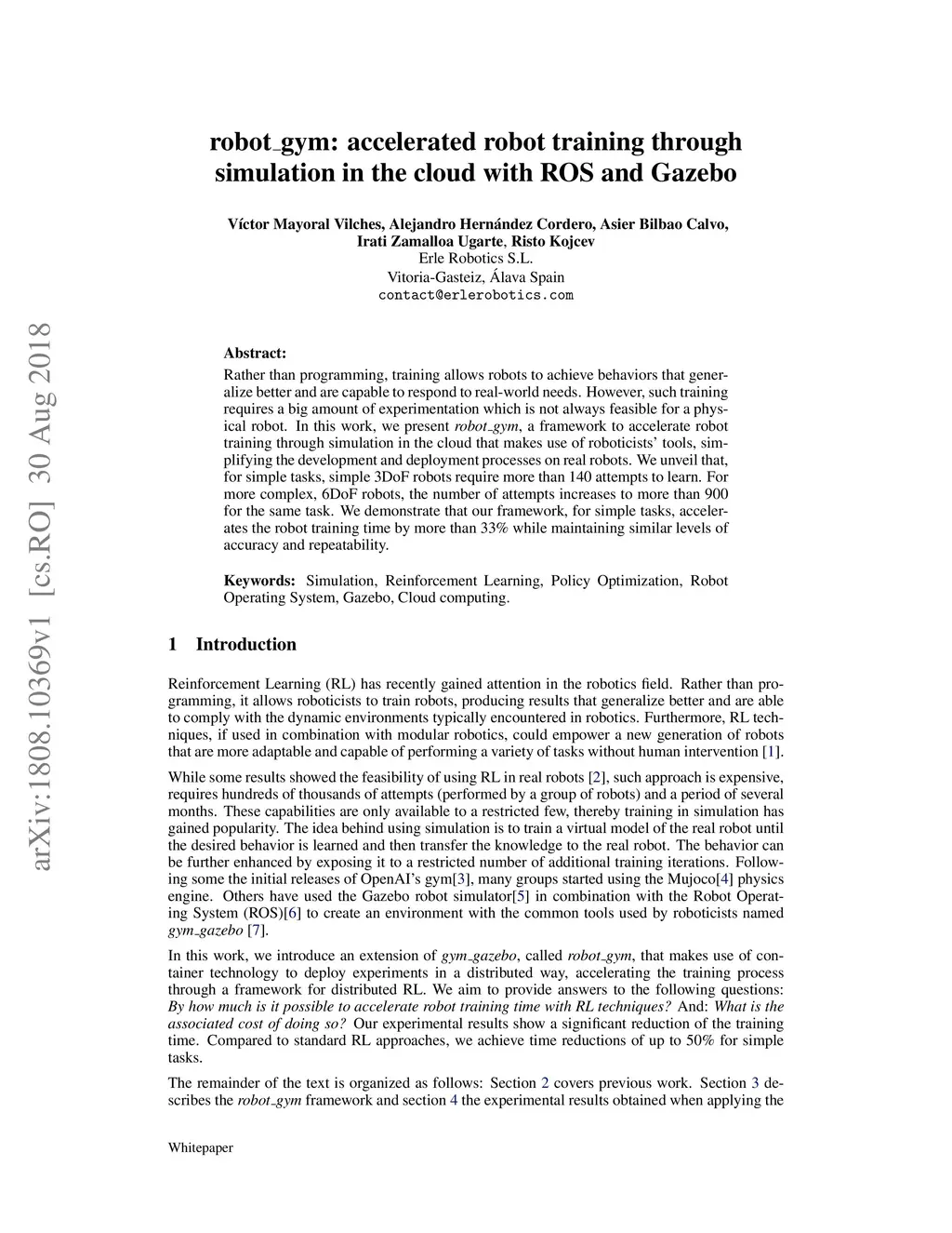 Robot_gym: accelerated robot training through simulation in the cloud