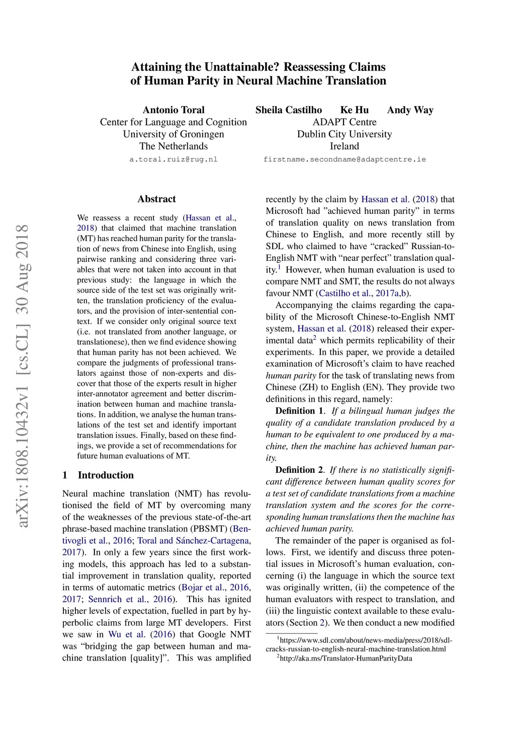 Attaining the Unattainable? Reassessing Claims of Human Parity in Neural