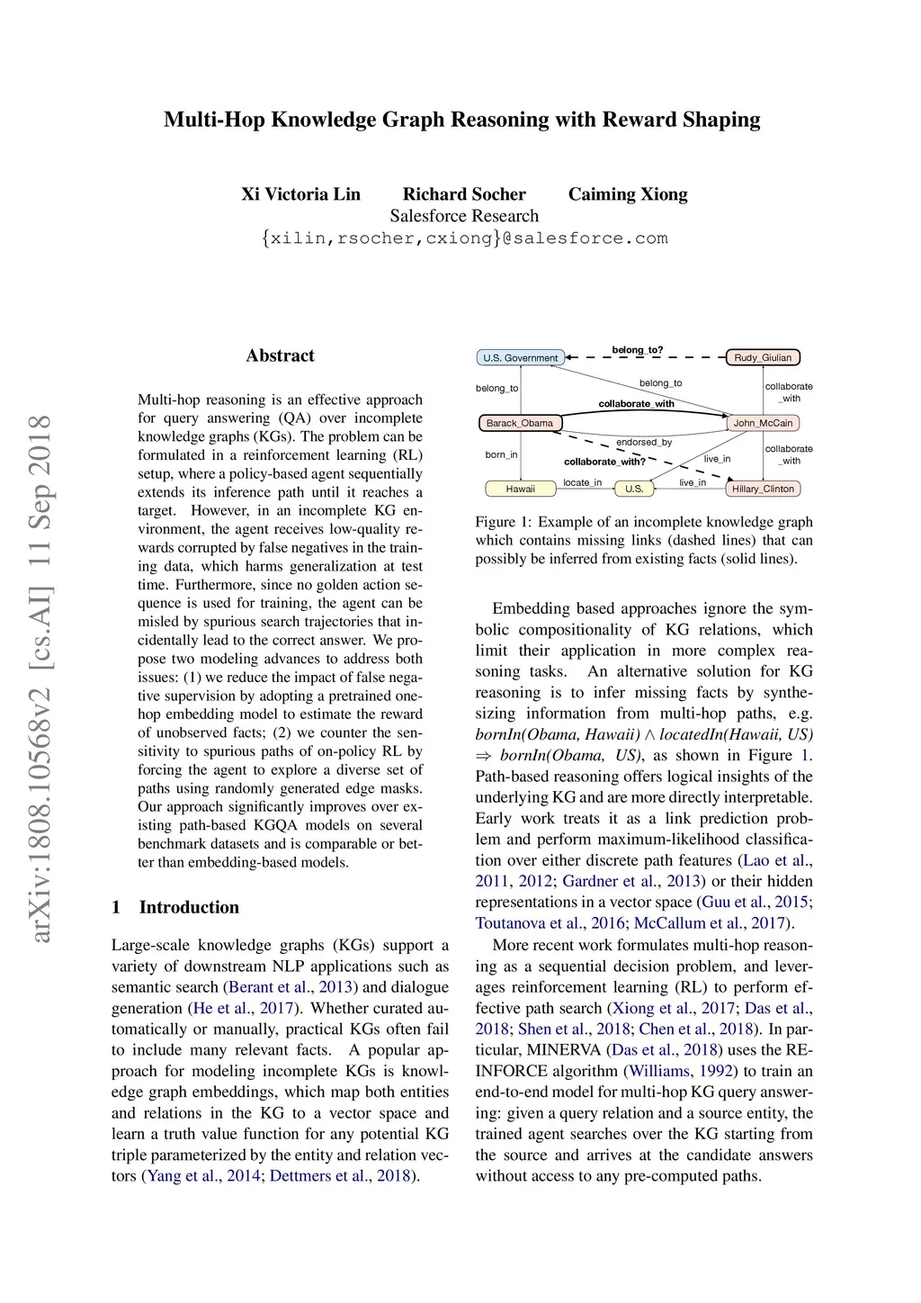 Multi-Hop Knowledge Graph Reasoning with Reward Shaping