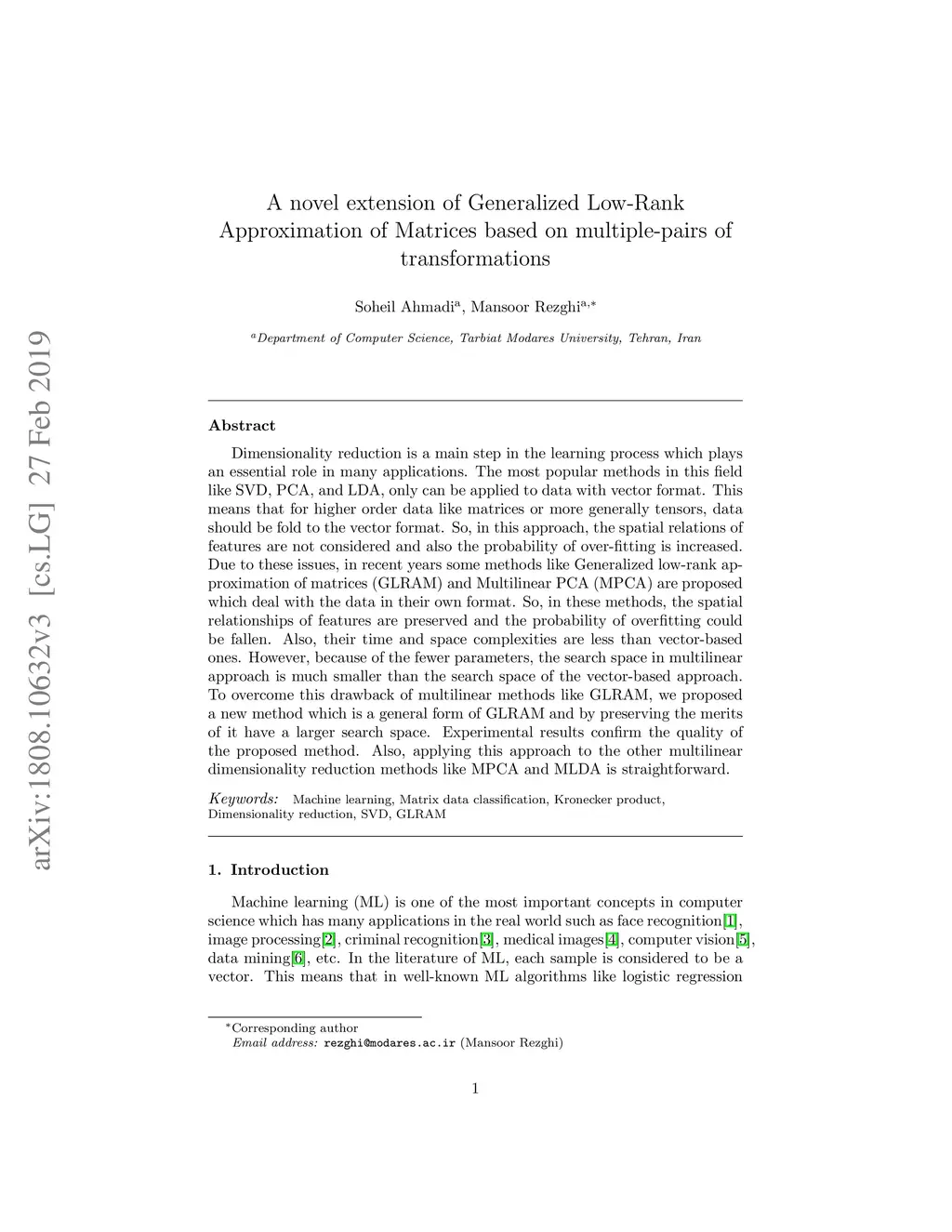 Dimensionality reduction is a main step in the learning process which plays an essential role in many applications. The most popular methods in this field like SVD, PCA, and LDA, only can be applied to data with vector format. This means that for higher order data like matrices or more generally tensors, data should be fold to the vector format. So, in this approach, the spatial relations of features are not considered and also the probability of over-fitting is increased. Due to these issues, in recent years some methods like Generalized low-rank approximation of matrices (GLRAM) and Multilinear PCA (MPCA) are proposed which deal with the data in their own format. So, in these methods, the spatial relationships of features are preserved and the probability of overfitting could be fallen. Also, their time and space complexities are less than vector-based ones. However, because of the fewer parameters, the search space in a multilinear approach is much smaller than the search space of the vector-based approach. To overcome this drawback of multilinear methods like GLRAM, we proposed a new method which is a general form of GLRAM and by preserving the merits of it have a larger search space. Experimental results confirm the quality of the proposed method. Also, applying this approach to the other multilinear dimensionality reduction methods like MPCA and MLDA is straightforward.