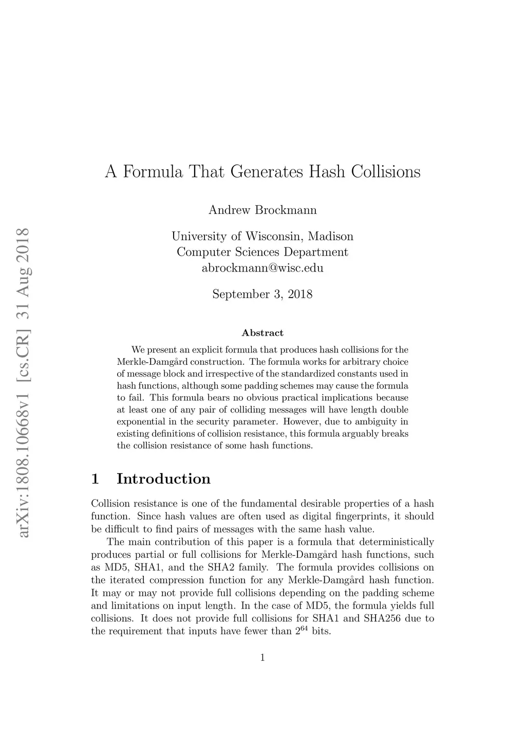 A Formula That Generates Hash Collisions