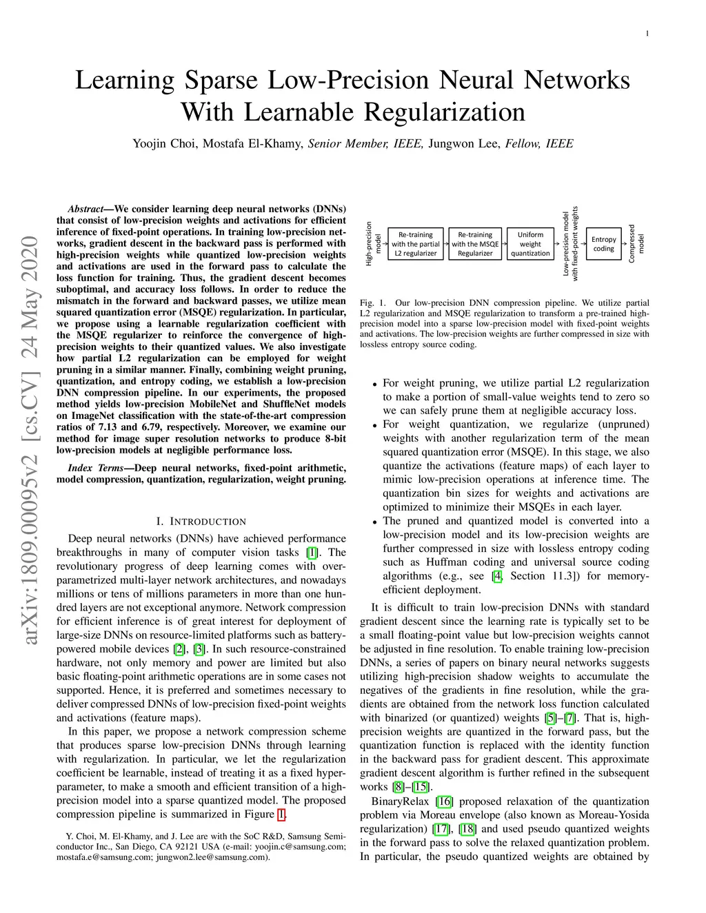 Learning Sparse Low-Precision Neural Networks With Learnable