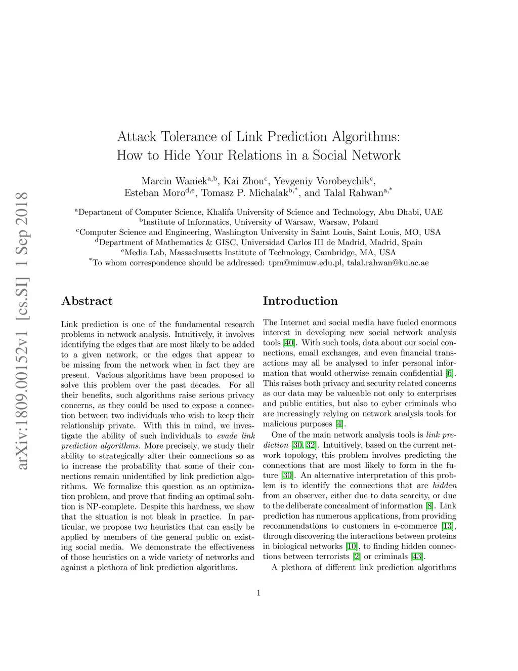 Link prediction is one of the fundamental research problems in network analysis. Intuitively, it involves identifying the edges that are most likely to be added to a given network, or the edges that appear to be missing from the network when in fact they are present. Various algorithms have been proposed to solve this problem over the past decades. For all their benefits, such algorithms raise serious privacy concerns, as they could be used to expose a connection between two individuals who wish to keep their relationship private. With this in mind, we investigate the ability of such individuals to evade link prediction algorithms. More precisely, we study their ability to strategically alter their connections so as to increase the probability that some of their connections remain unidentified by link prediction algorithms. We formalize this question as an optimization problem, and prove that finding an optimal solution is NP-complete. Despite this hardness, we show that the situation is not bleak in practice. In particular, we propose two heuristics that can easily be applied by members of the general public on existing social media. We demonstrate the effectiveness of those heuristics on a wide variety of networks and against a plethora of link prediction algorithms.