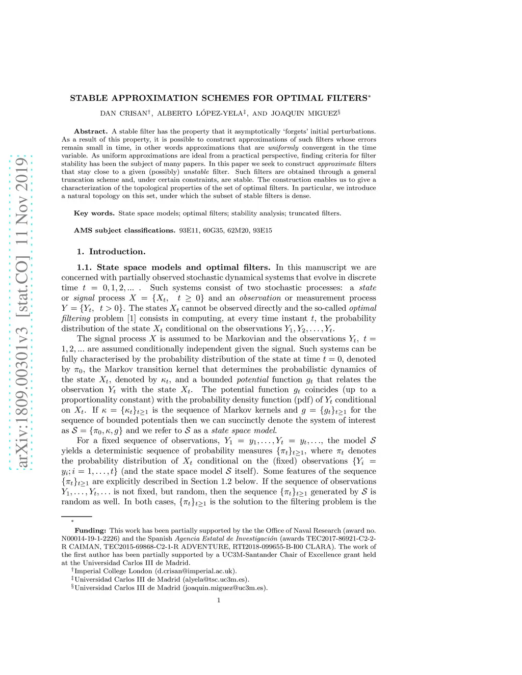 Stable approximation schemes for optimal filters