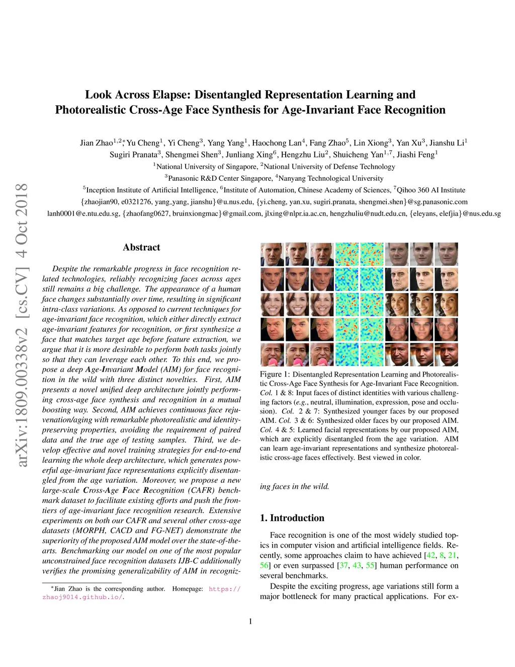 Look Across Elapse: Disentangled Representation Learning and Photorealistic Cross-Age Face Synthesis for Age-Invariant Face Recognition