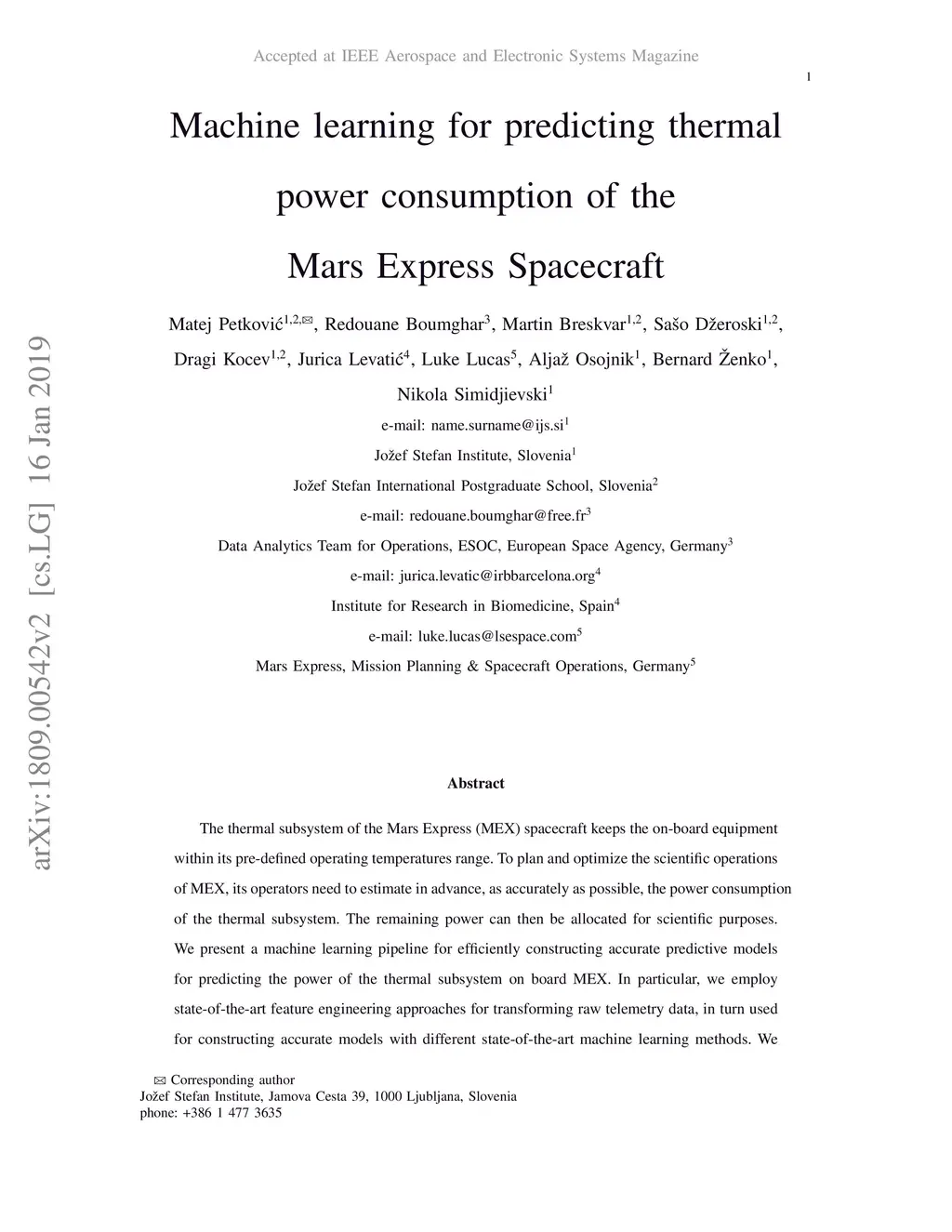 Machine learning for predicting thermal power consumption of the Mars