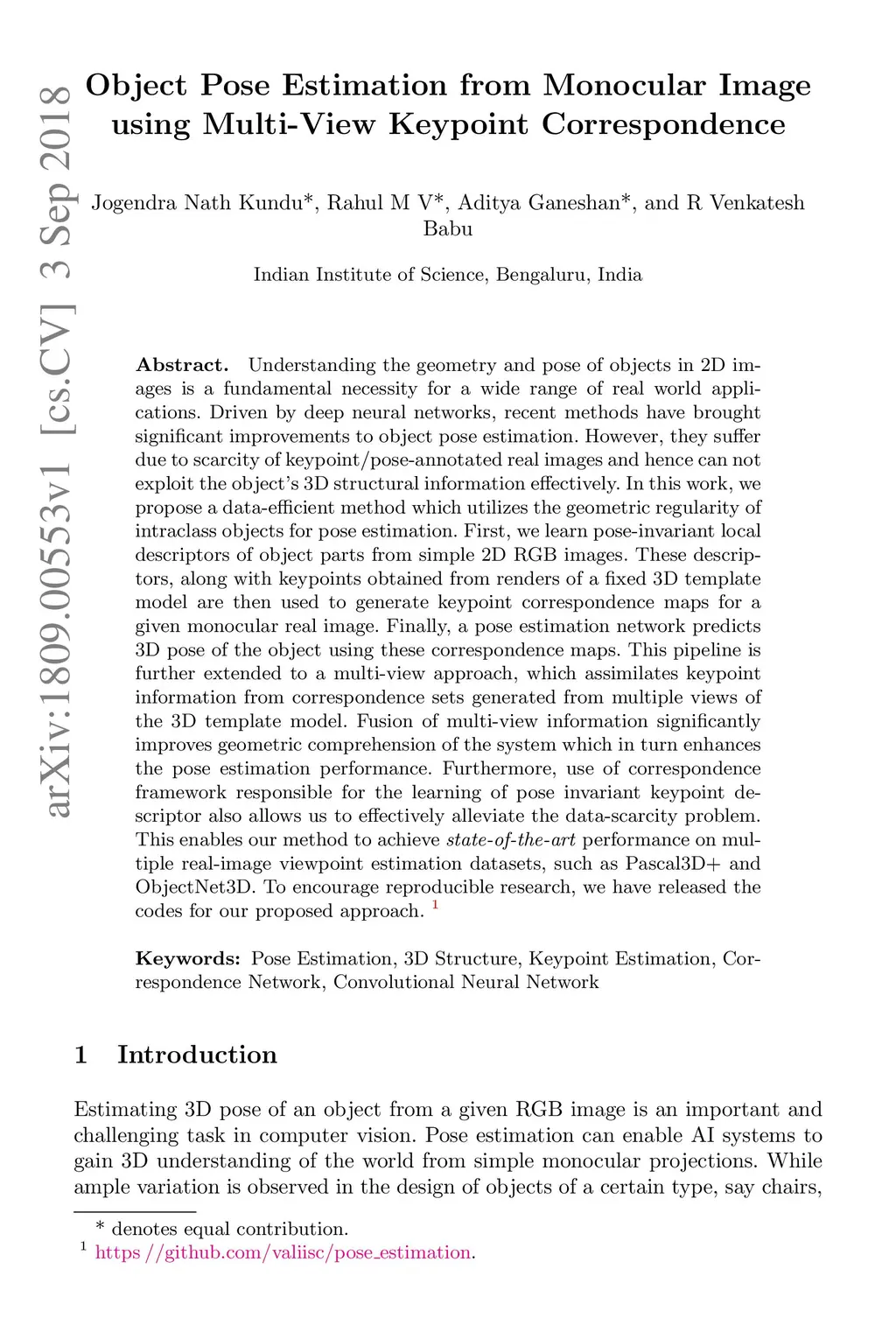 Object Pose Estimation from Monocular Image using Multi-View Keypoint