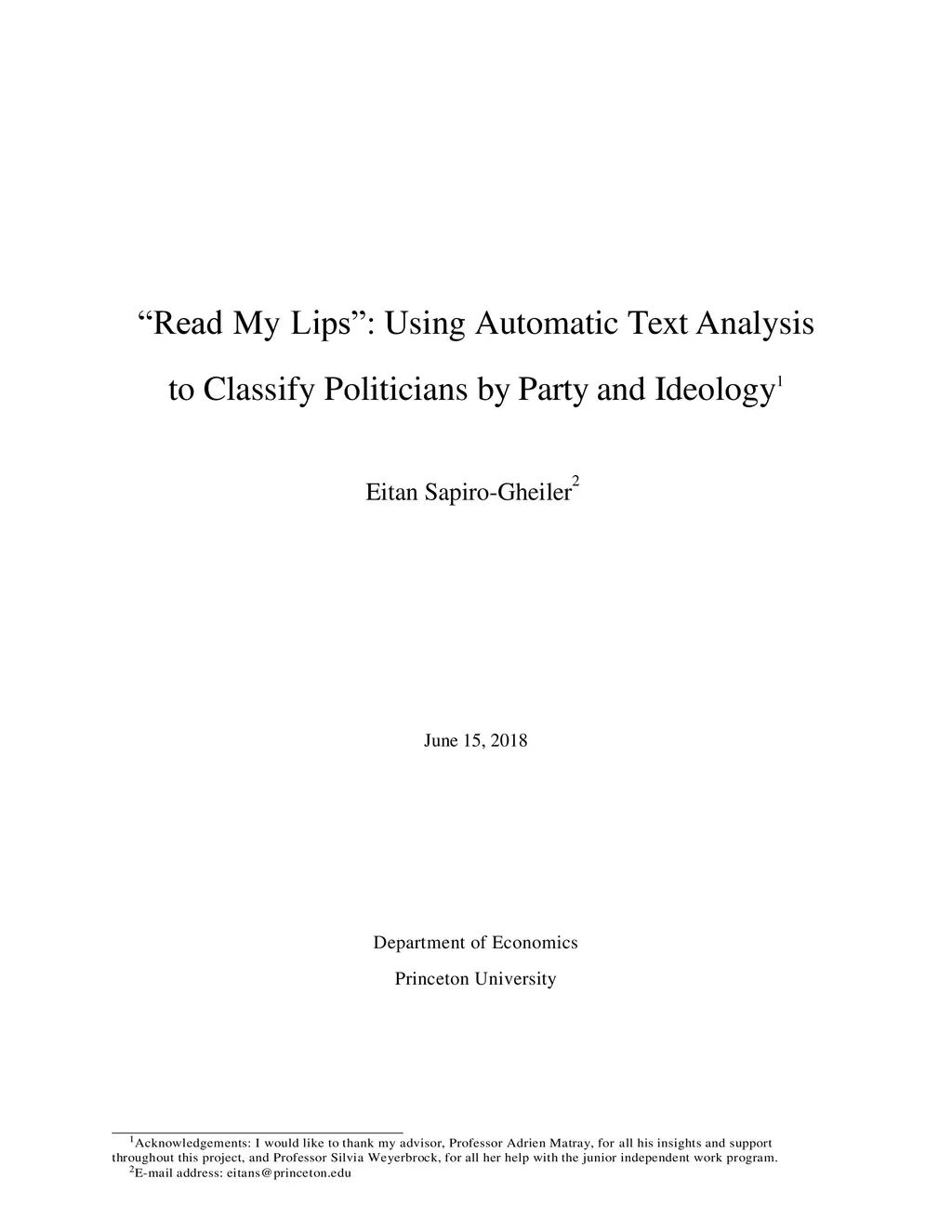 "Read My Lips": Using Automatic Text Analysis to Classify Politicians by