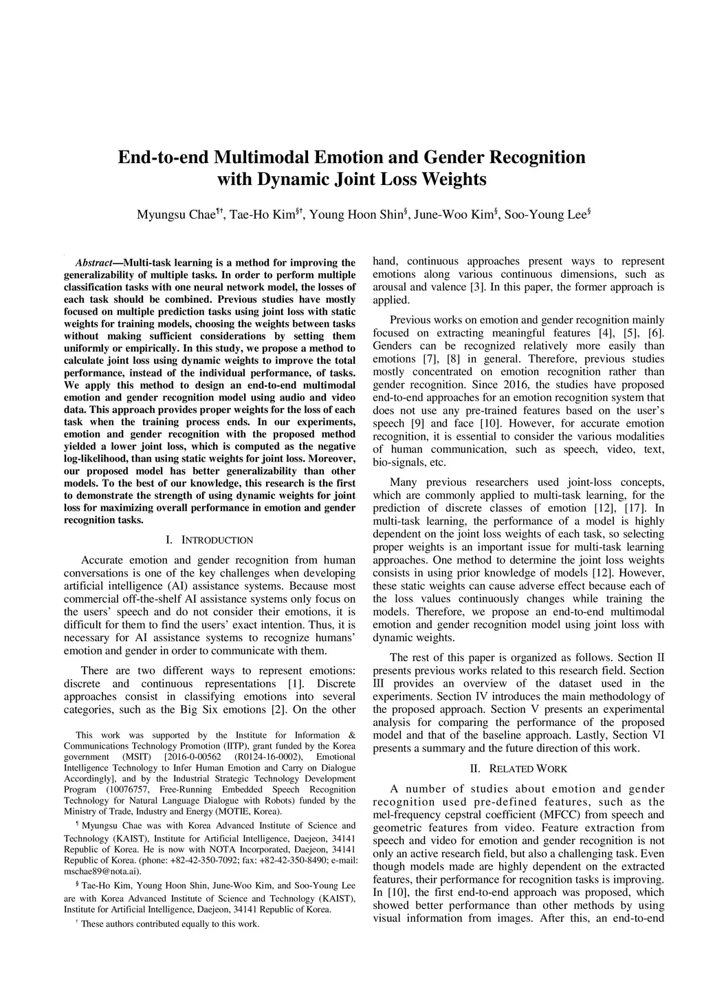End-to-end Multimodal Emotion and Gender Recognition with Dynamic Joint