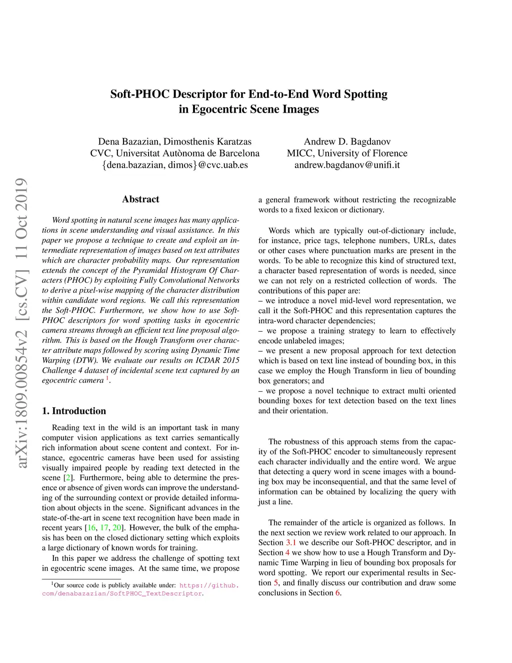 Soft-PHOC Descriptor for End-to-End Word Spotting in Egocentric Scene