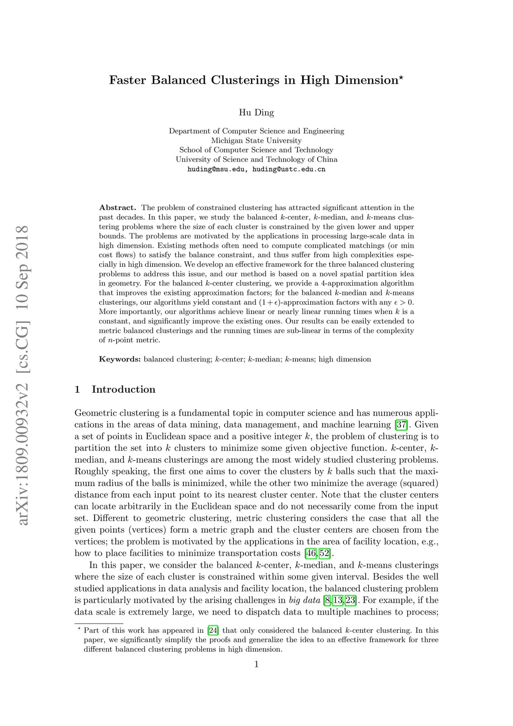 The problem of constrained clustering has attracted significant attention in the past decades. In this paper, we study the balanced -center, -median, and -means clustering problems where the size of each cluster is constrained by the given lower and upper bounds. The problems are motivated by the applications in processing large-scale data in high dimension. Existing methods often need to compute complicated matchings (or min cost flows) to satisfy the balance constraint, and thus suffer from high complexities especially in high dimension. We develop an effective framework for the three balanced clustering problems to address this issue, and our method is based on a novel spatial partition idea in geometry. For the balanced -center clustering, we provide a -approximation algorithm that improves the existing approximation factors; for the balanced -median and -means clusterings, our algorithms yield constant and -approximation factors with any . More importantly, our algorithms achieve linear or nearly linear running times when is a constant, and significantly improve the existing ones. Our results can be easily extended to metric balanced clusterings and the running times are sub-linear in terms of the complexity of -point metric.