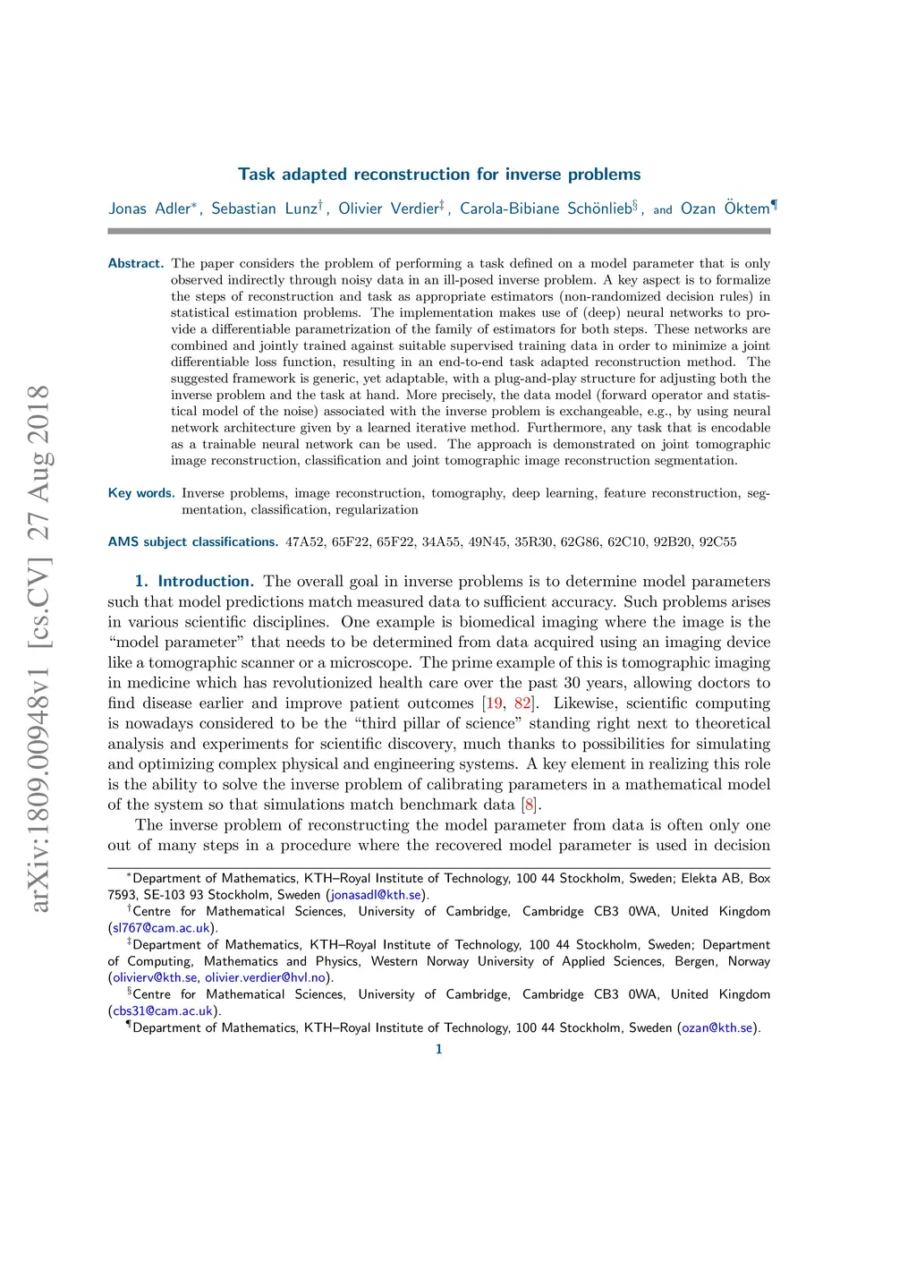 Task adapted reconstruction for inverse problems