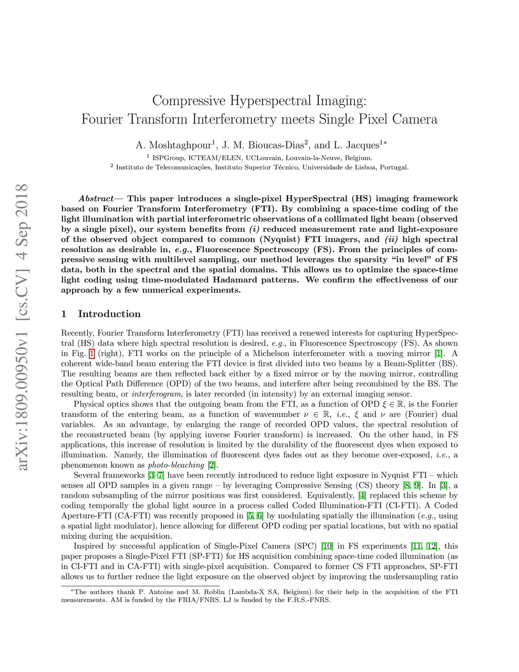 This paper introduces a single-pixel HyperSpectral (HS) imaging framework based on Fourier Transform Interferometry (FTI). By combining a space-time coding of the light illumination with partial interferometric observations of a collimated light beam (observed by a single pixel), our system benefits from (i) reduced measurement rate and light-exposure of the observed object compared to common (Nyquist) FTI imagers, and (ii) high spectral resolution as desirable in, e.g., Fluorescence Spectroscopy (FS). From the principles of compressive sensing with multilevel sampling, our method leverages the sparsity "in level" of FS data, both in the spectral and the spatial domains. This allows us to optimize the space-time light coding using time-modulated Hadamard patterns. We confirm the effectiveness of our approach by a few numerical experiments.
