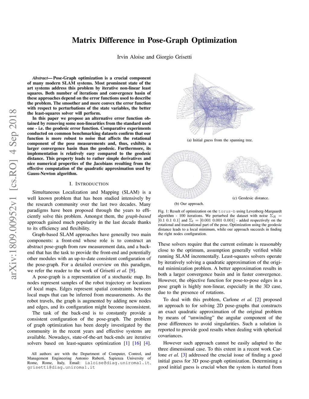 Pose-Graph optimization is a crucial component of many modern SLAM systems. Most prominent state of the art systems address this problem by iterative non-linear least squares. Both number of iterations and convergence basin of these approaches depend on the error functions used to describe the problem. The smoother and more convex the error function with respect to perturbations of the state variables, the better the least-squares solver will perform. In this paper we propose an alternative error function obtained by removing some non-linearities from the standard used one - i.e. the geodesic error function. Comparative experiments conducted on common benchmarking datasets confirm that our function is more robust to noise that affects the rotational component of the pose measurements and, thus, exhibits a larger convergence basin than the geodesic. Furthermore, its implementation is relatively easy compared to the geodesic distance. This property leads to rather simple derivatives and nice numerical properties of the Jacobians resulting from the effective computation of the quadratic approximation used by Gauss-Newton algorithm.