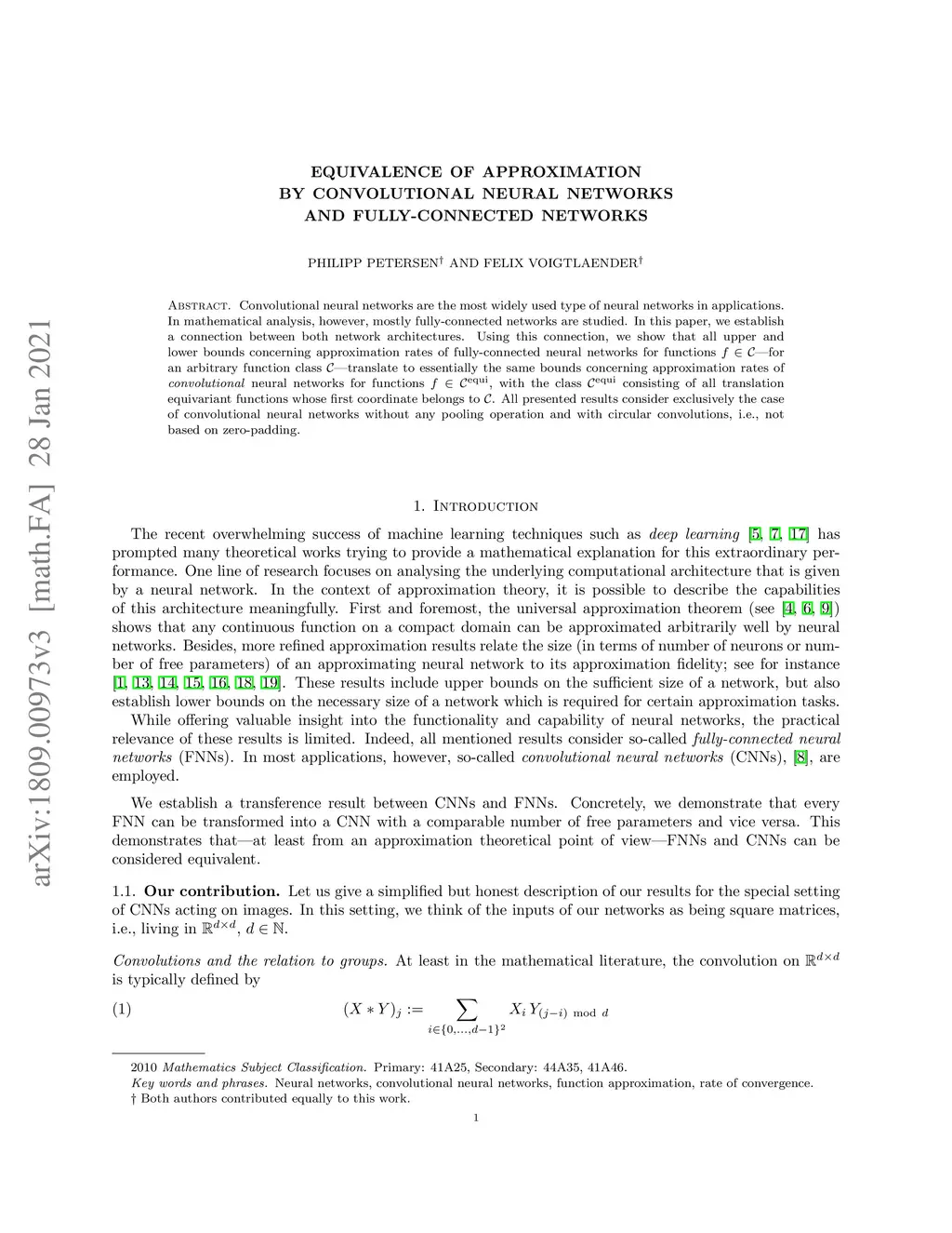 Equivalence of approximation by convolutional neural networks and