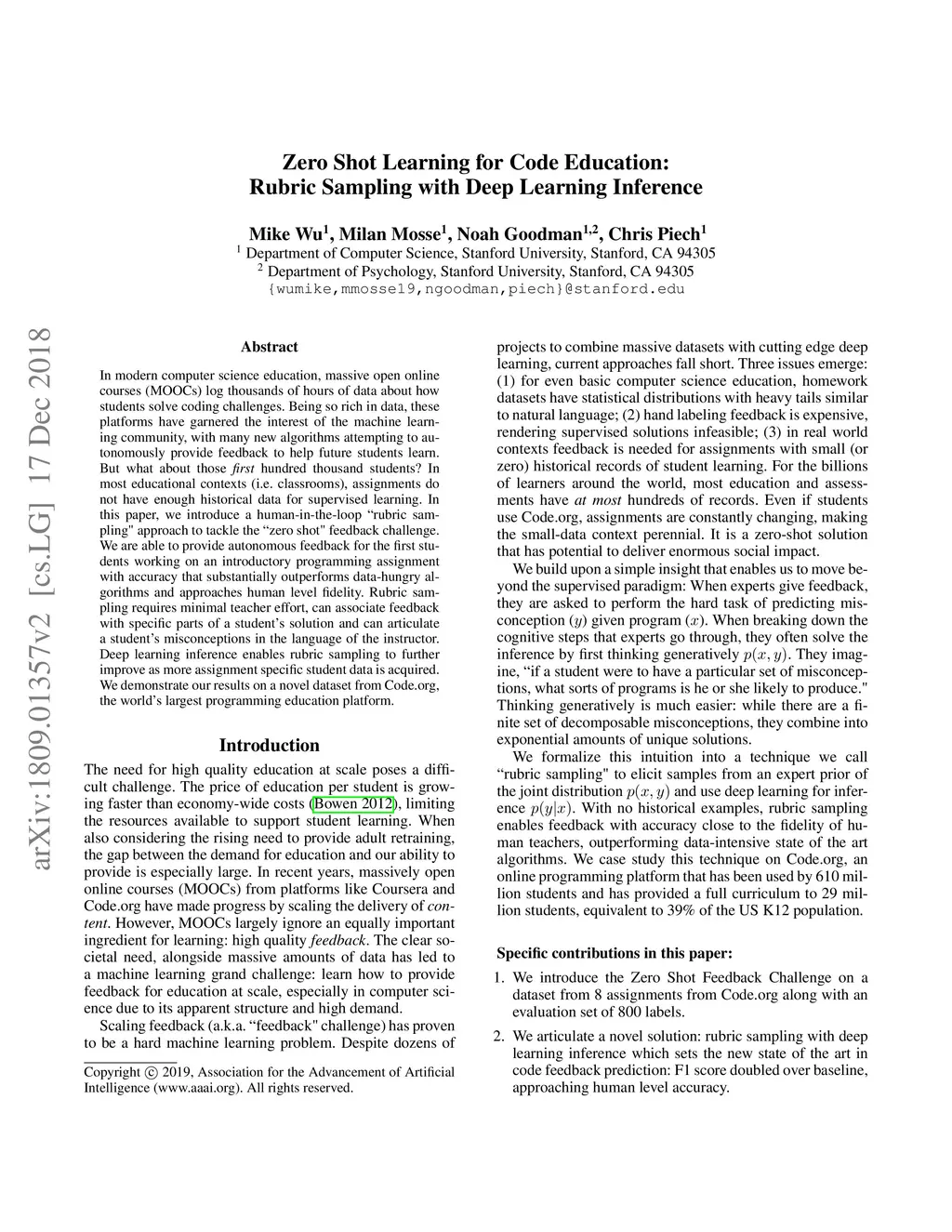 Zero Shot Learning for Code Education: Rubric Sampling with Deep