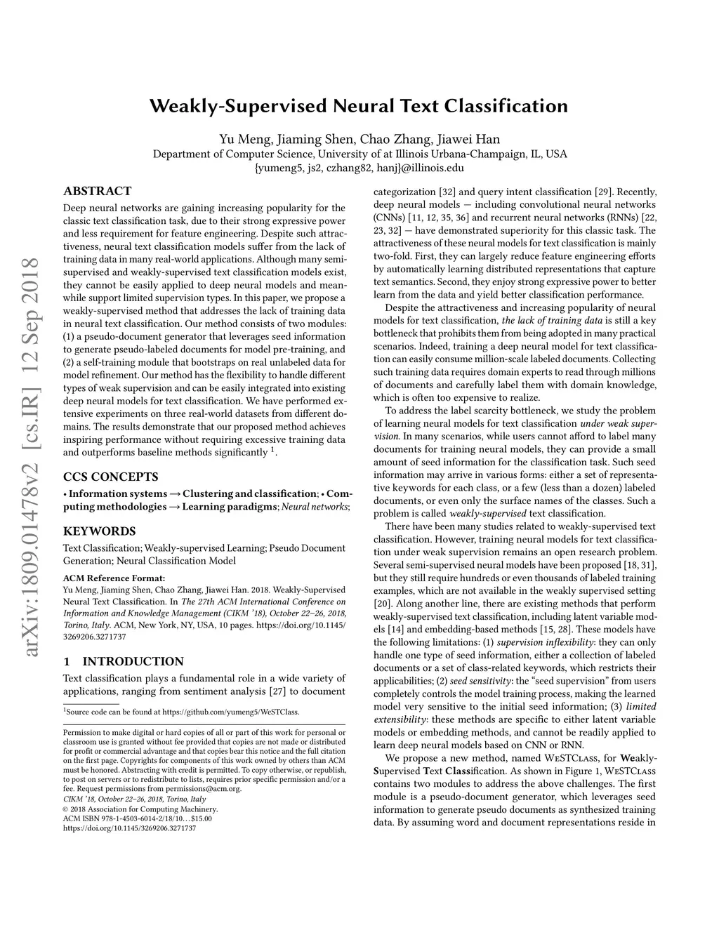 Weakly-Supervised Neural Text Classification