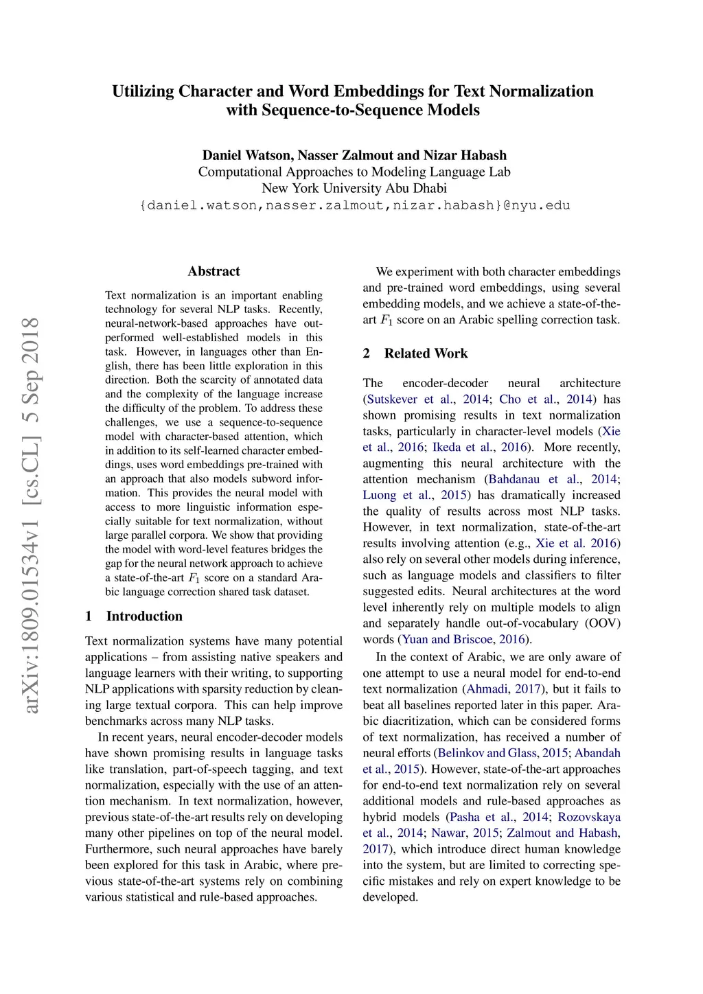 Utilizing Character and Word Embeddings for Text Normalization with