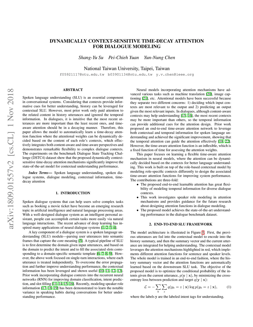 Dynamically Context-Sensitive Time-Decay Attention for Dialogue Modeling