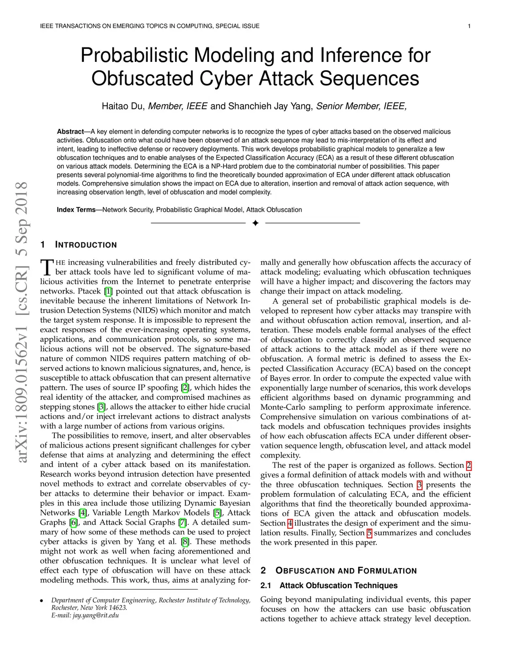 Probabilistic Modeling and Inference for Obfuscated Cyber Attack