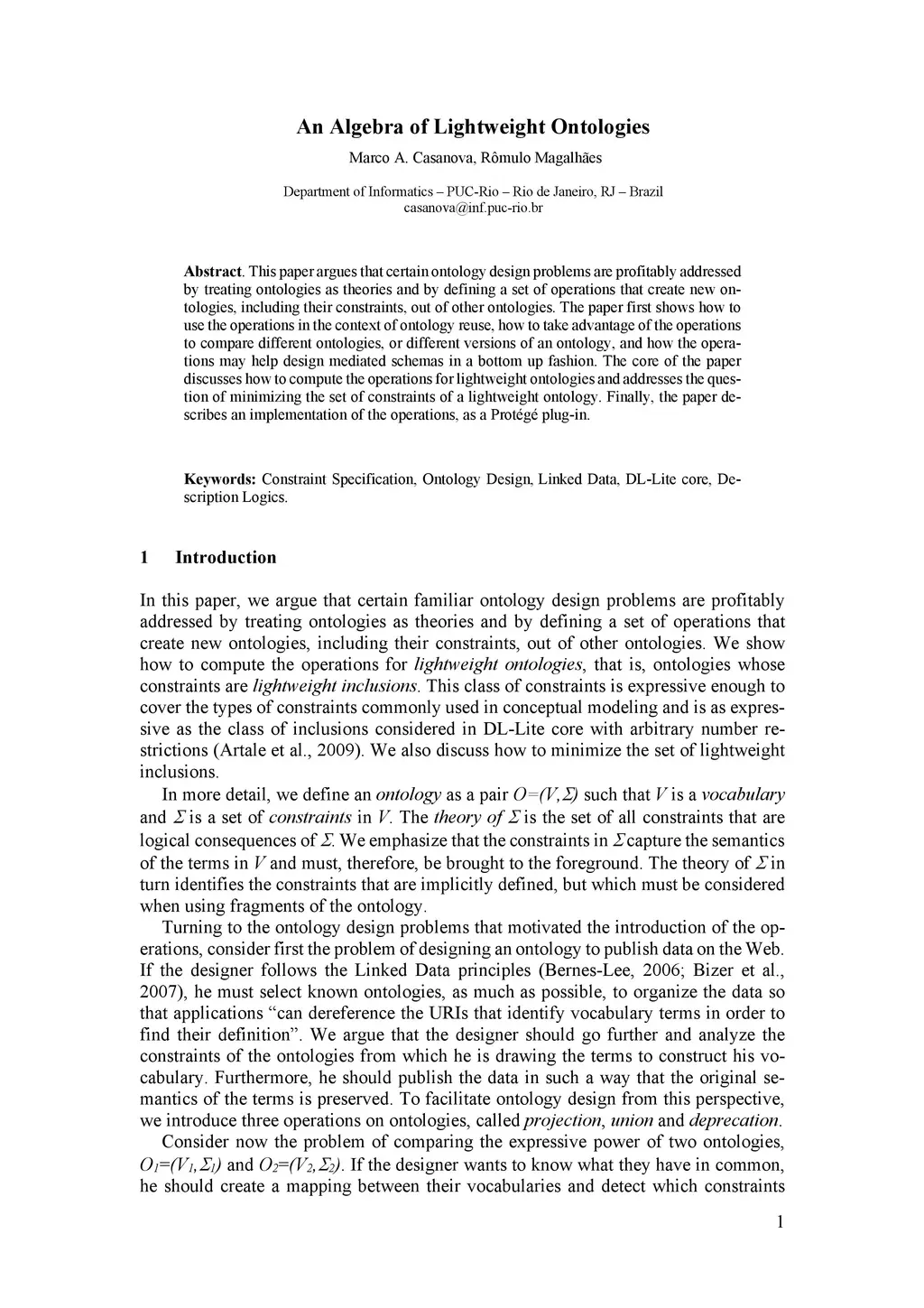 An Algebra of Lightweight Ontologies