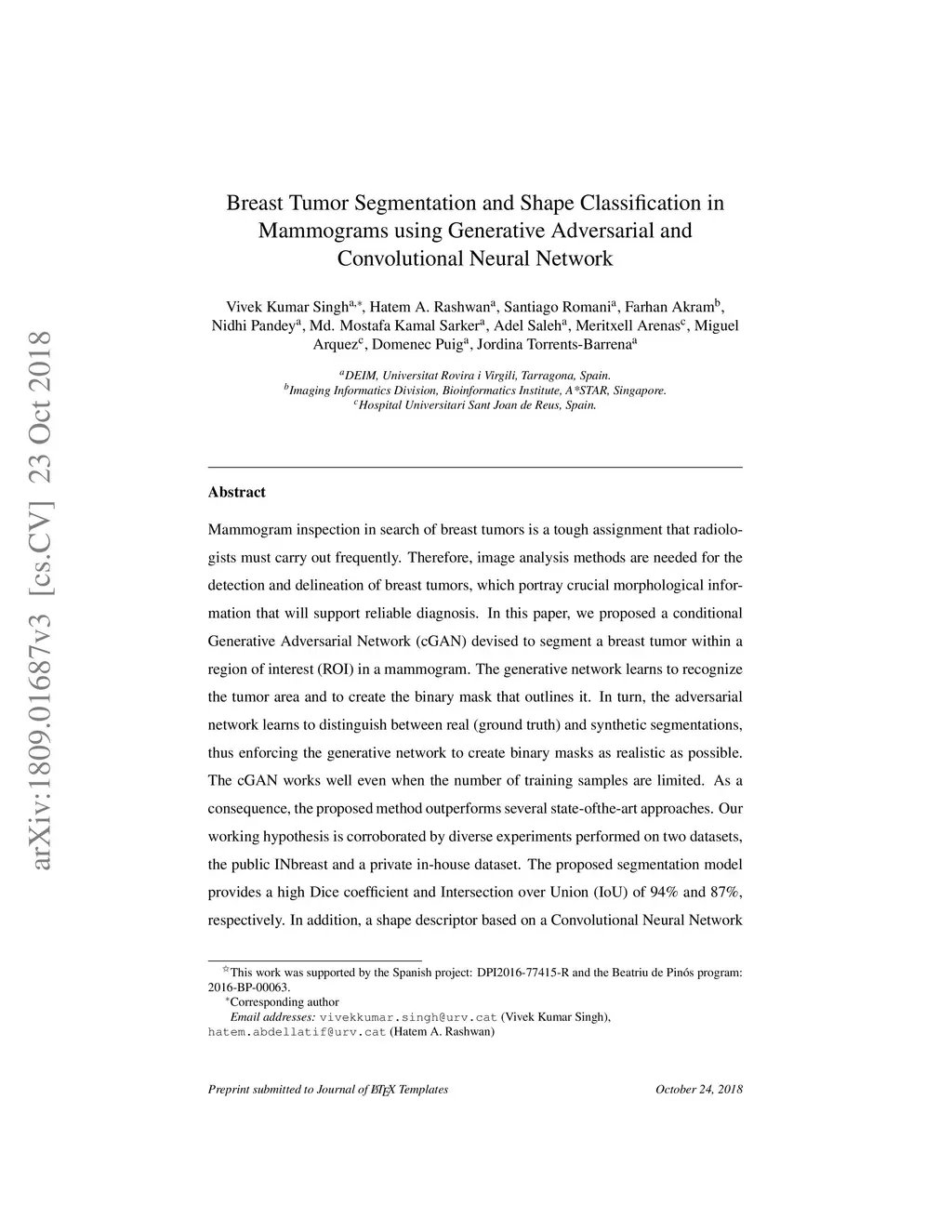 Breast Tumor Segmentation and Shape Classification in Mammograms using