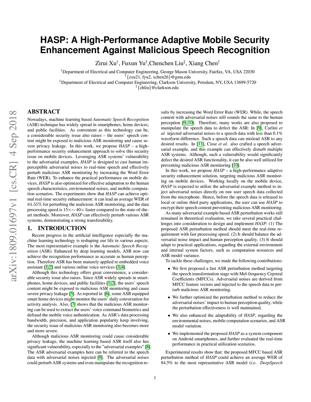 HASP: A High-Performance Adaptive Mobile Security Enhancement Against