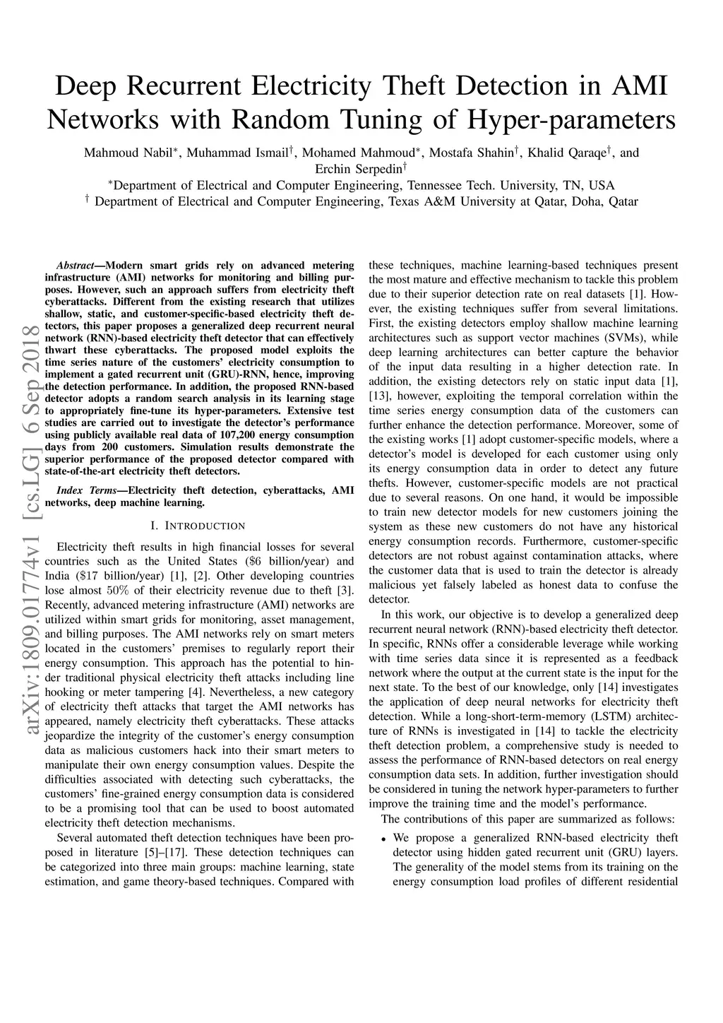 Deep Recurrent Electricity Theft Detection in AMI Networks with Random